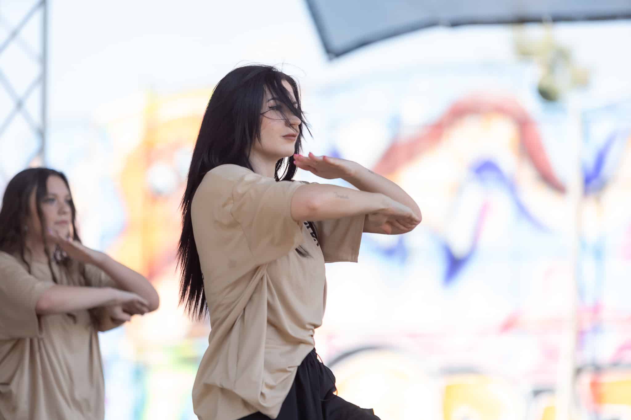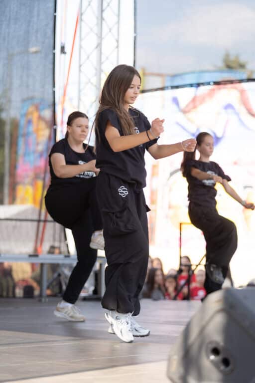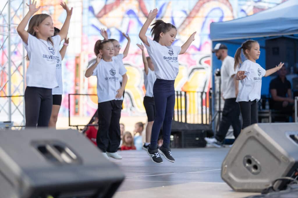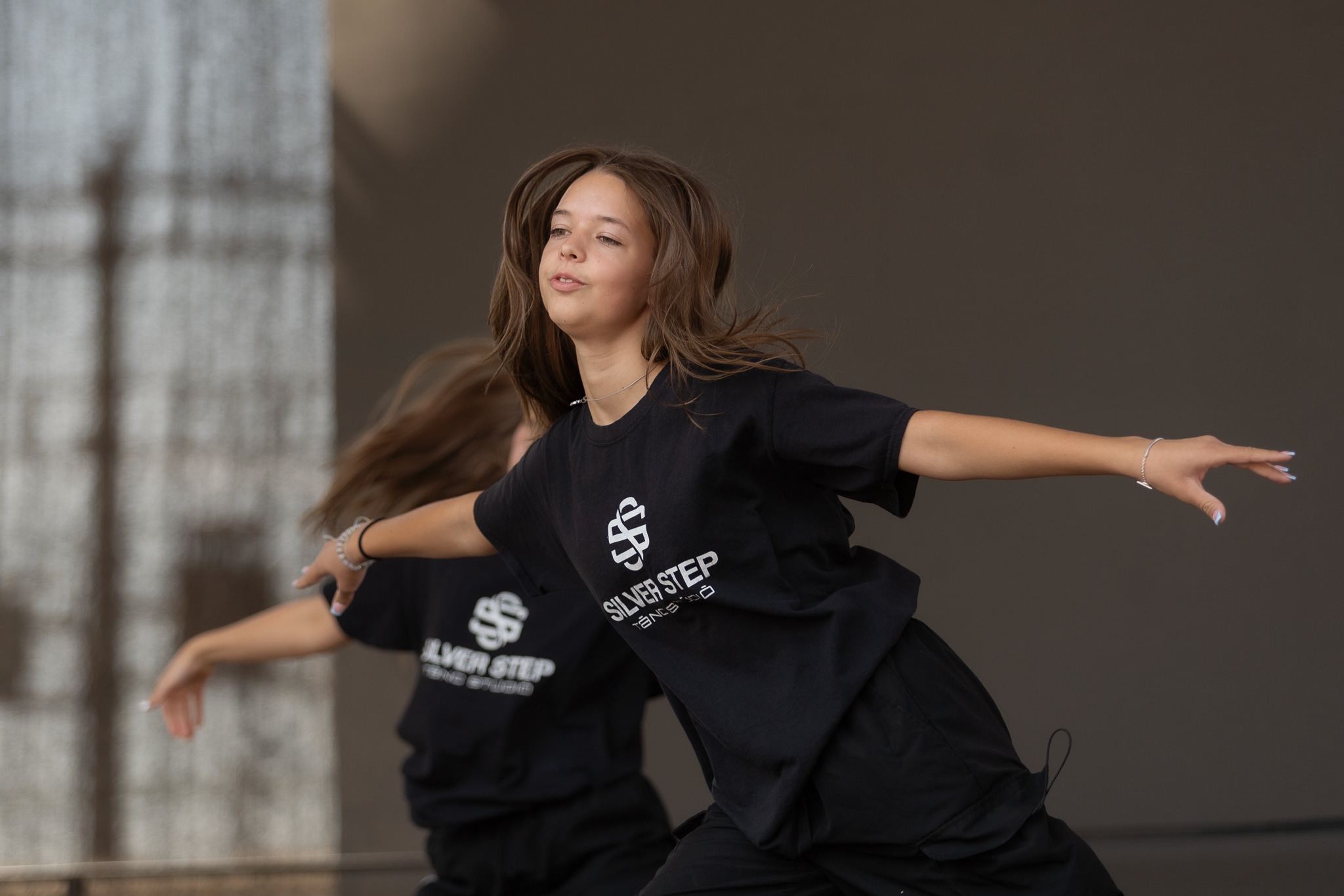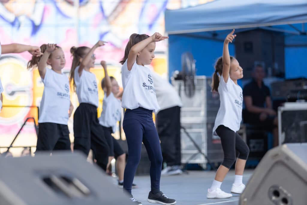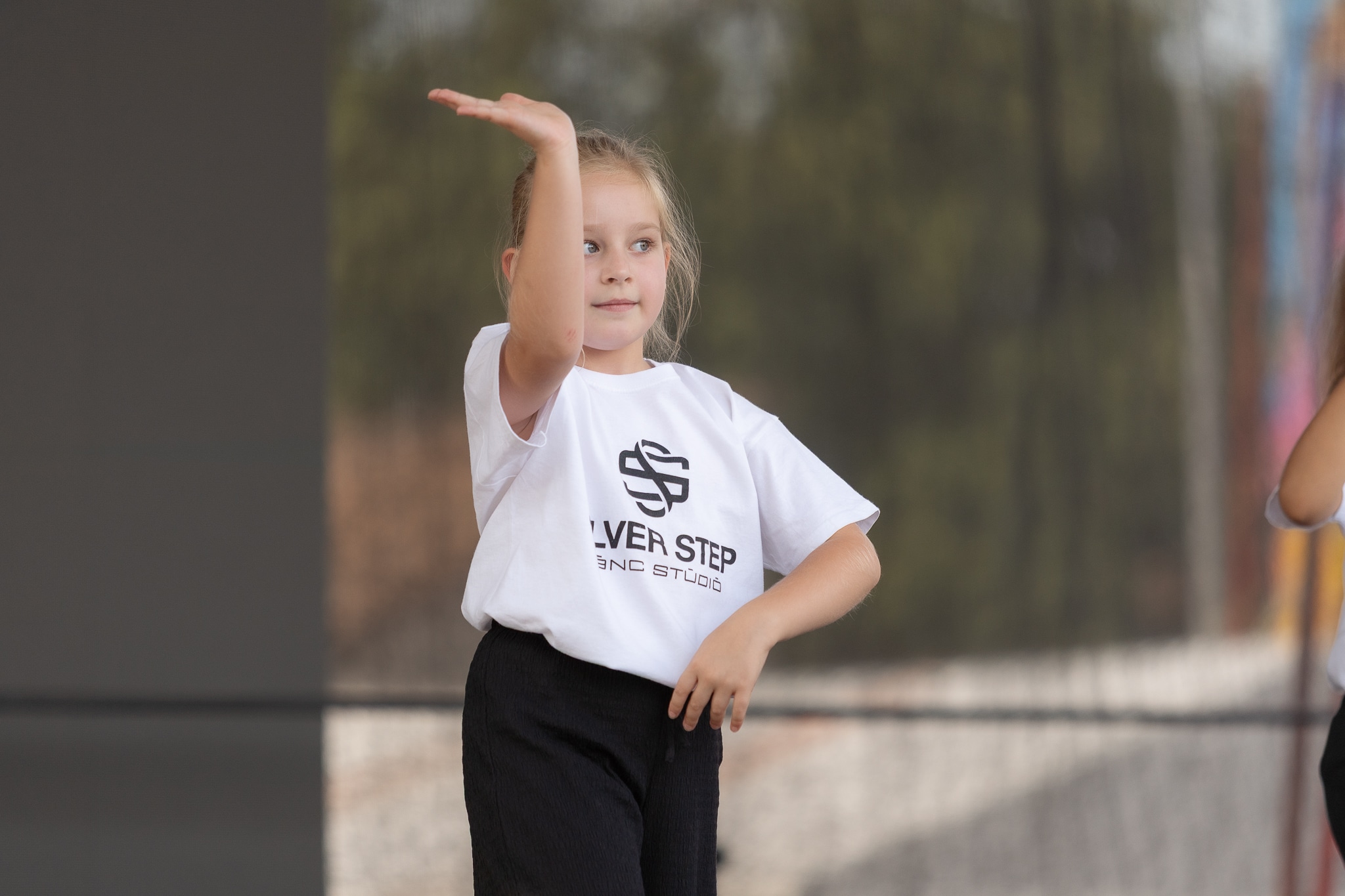 A Silver Step Táncstúdió növendékeinek bemutatójával kezdődött a szerda délutáni nagyszínpadi programsor a sportcsarnok parkolójában.