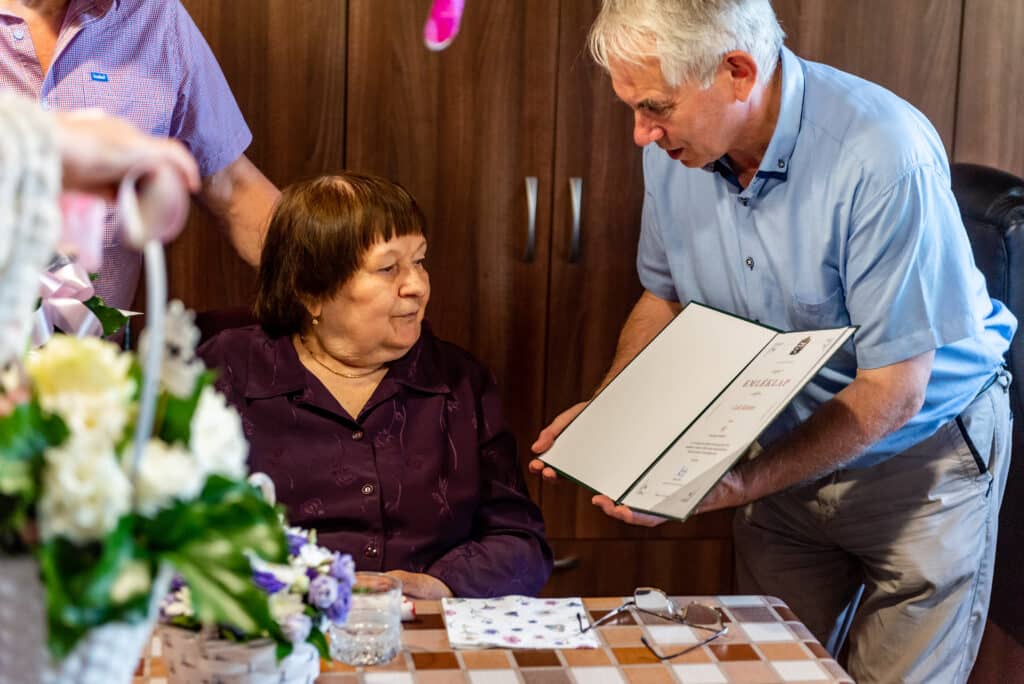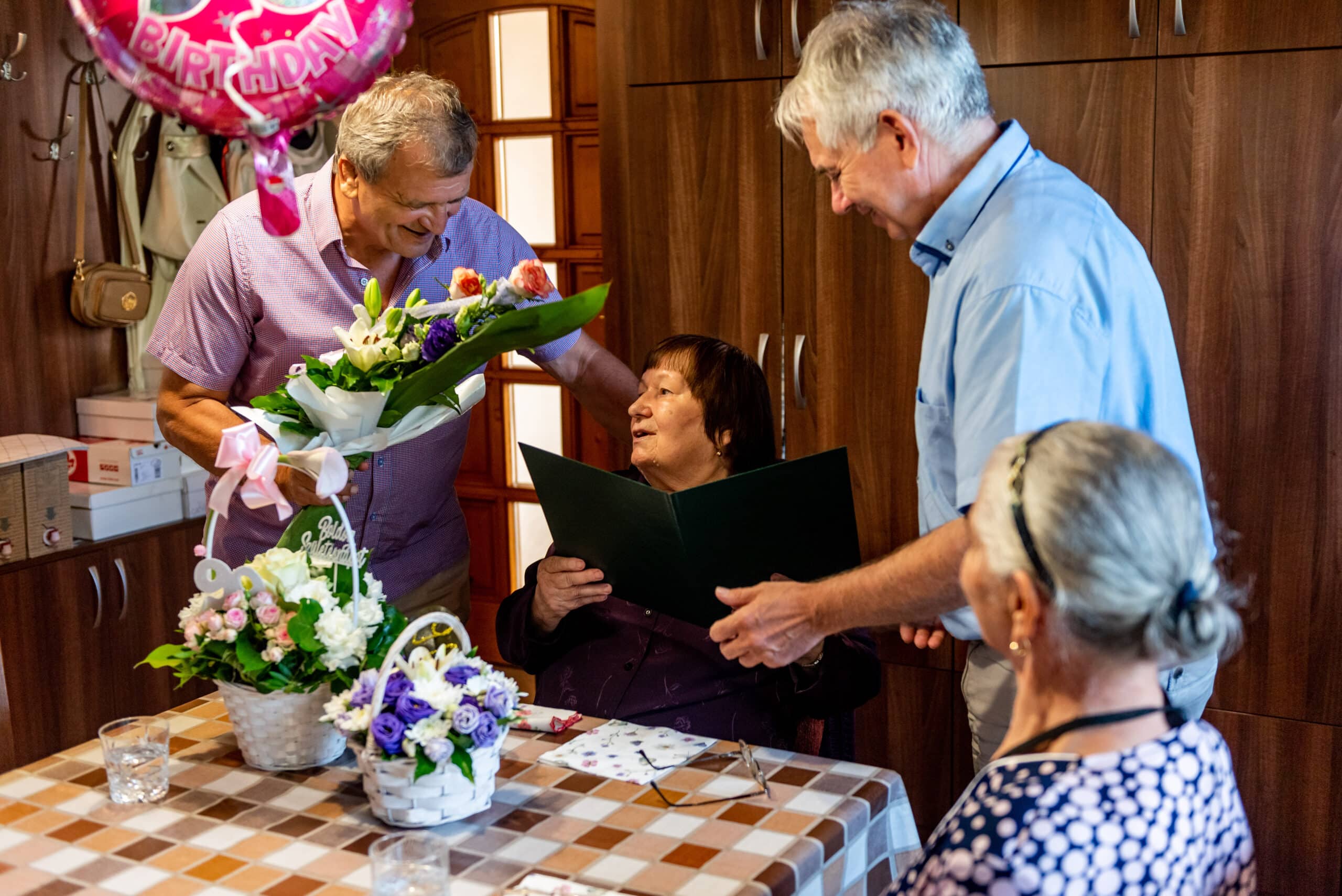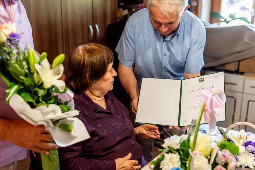 A köszöntés nemcsak a család, hanem a város elöljárói számára is örömteli és emlékezetes esemény volt. A jókedvű ünneplés hamar különleges fordulatot vett: Mária néni versekkel és dalokkal lepte meg vendégeit, szinte megállíthatatlan lelkesedéssel idézve fel a fiatalkorában tanult hosszú és tartalmas költeményeket. A vendégek örömmel hallgatták, ahogy Mária néni magával ragadó lendülettel szaval és énekel, így mutatva meg, hogy szíve és lelke ma is fiatal.