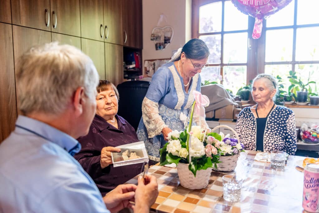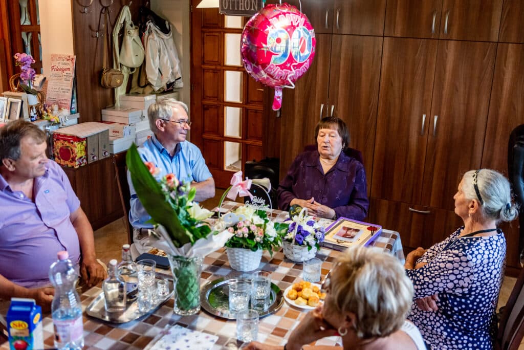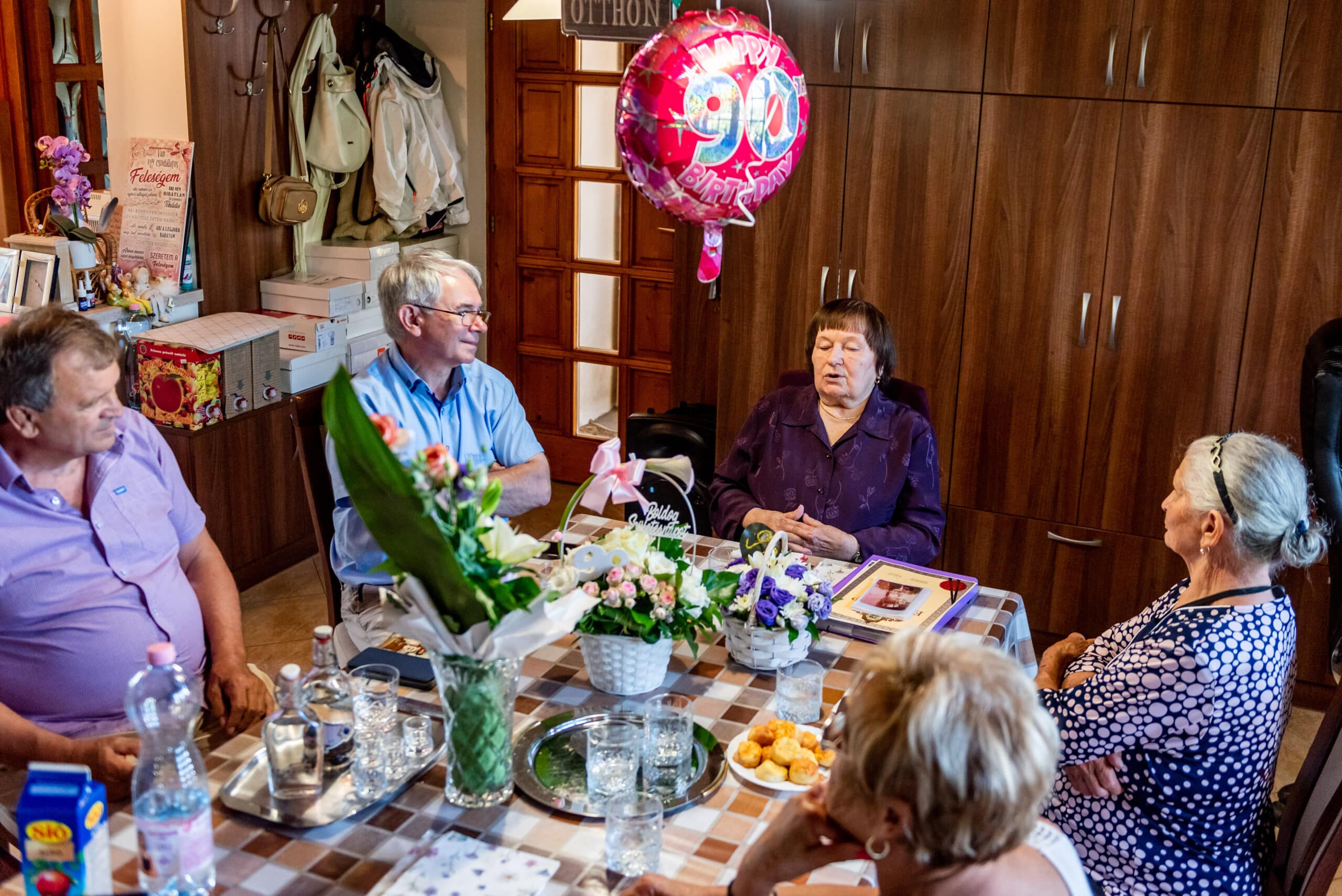 Mária néni meghatottan köszönte meg a köszöntéseket, hálás szívvel mondta el: boldog, hogy ilyen szép kort megélhetett elfogadható egészségben, és hogy szerető családja körében töltheti napjait.