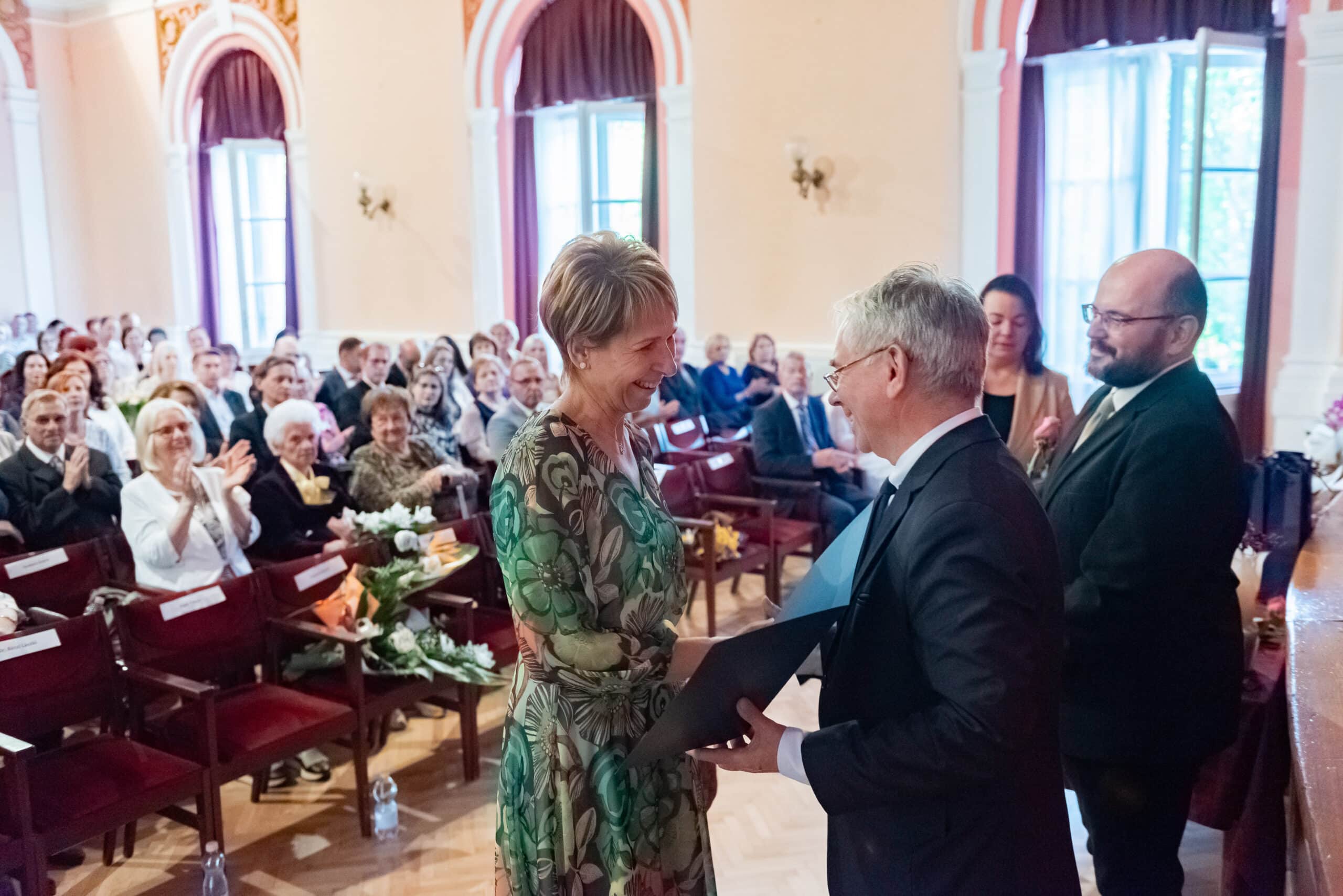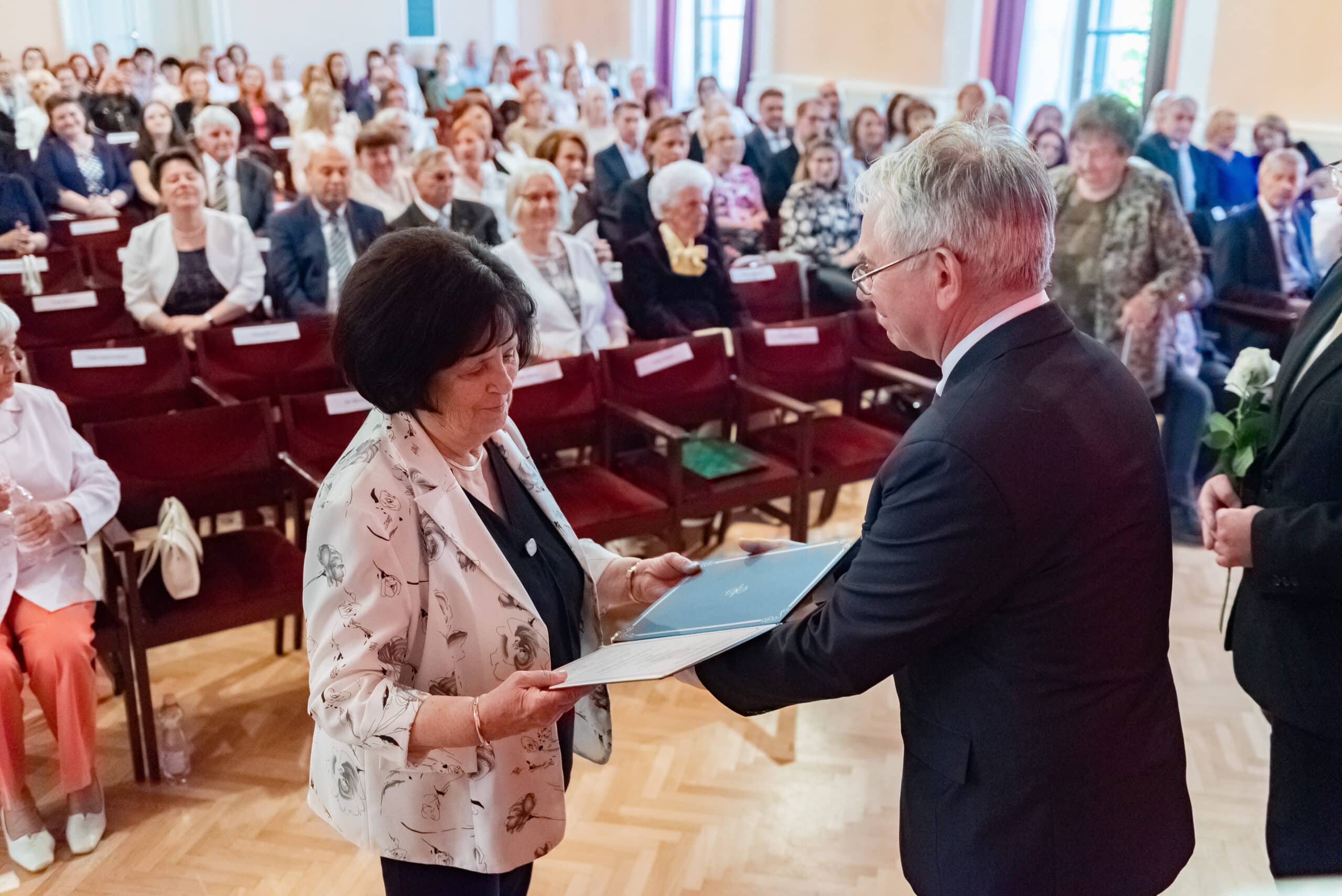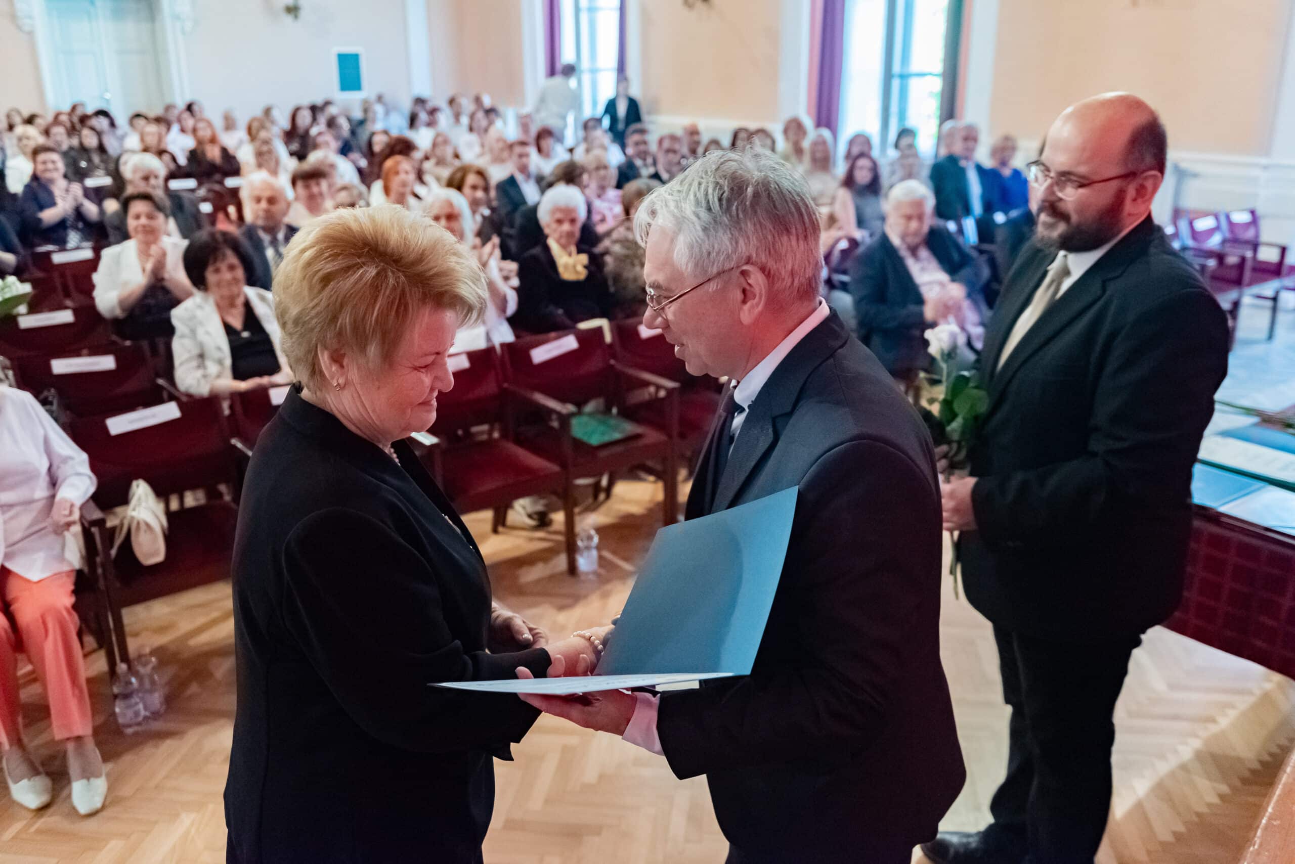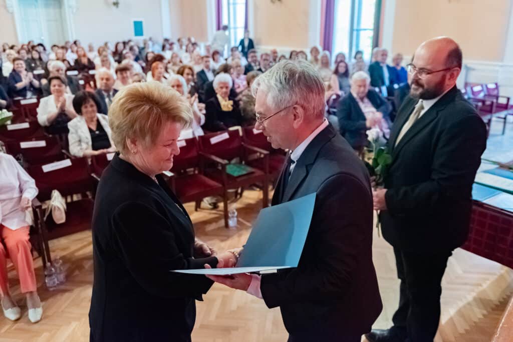 Az esemény csúcspontját a díszdiplomák átadása jelentette. Az ünnepségen arany, gyémánt és rubin okleveleket vehettek át azok a nyugdíjas pedagógusok, akik több évtizeddel ezelőtt szereztek diplomát, és egész életüket a tanításnak szentelték.