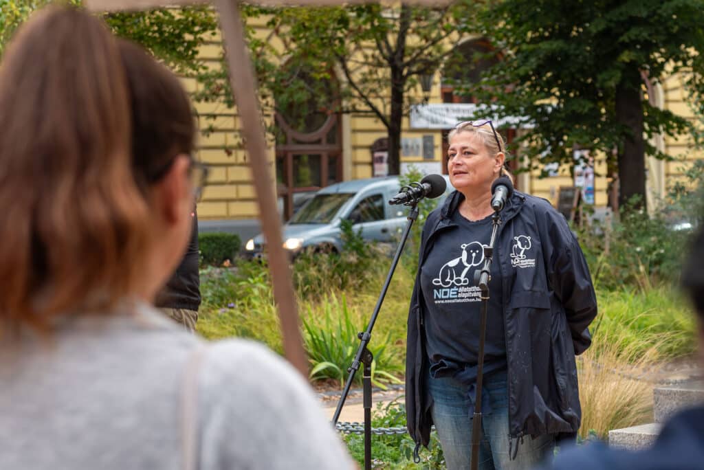 Az egyesület vezetője, Orbán Györgyi a tüntetésen könnyek között beszélt arról, milyen nehéz harcot vívtak Rozika életéért. Mint mondta, az első napokban a kutyának 24 órás felügyeletre volt szüksége, hiszen minden percben fennállt az életveszély.