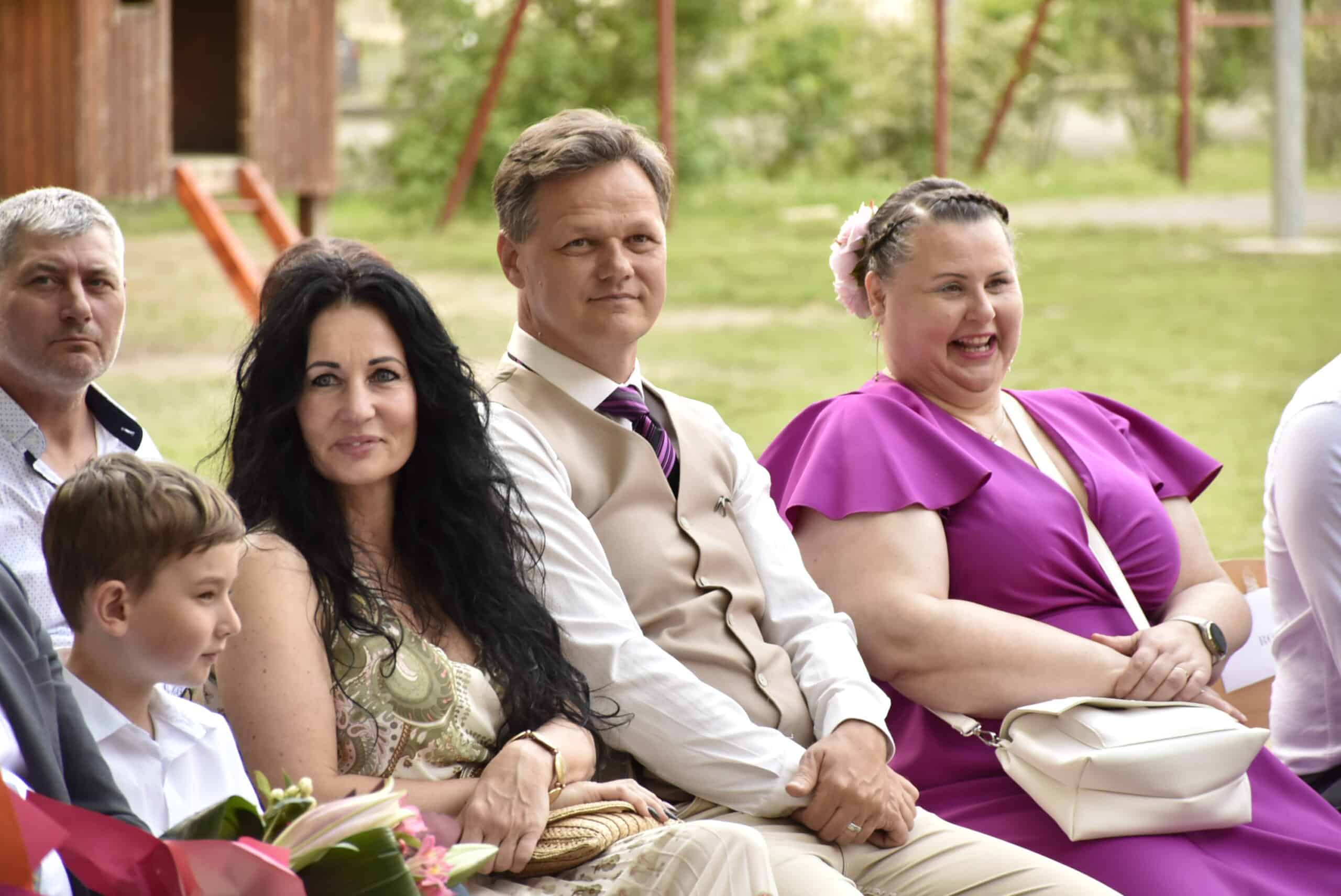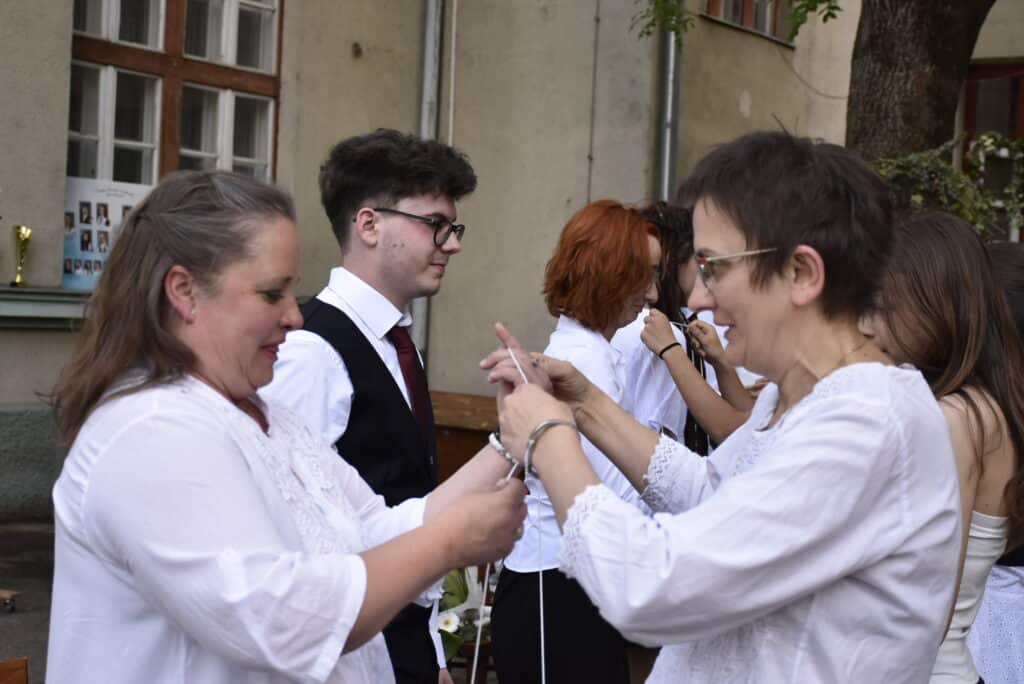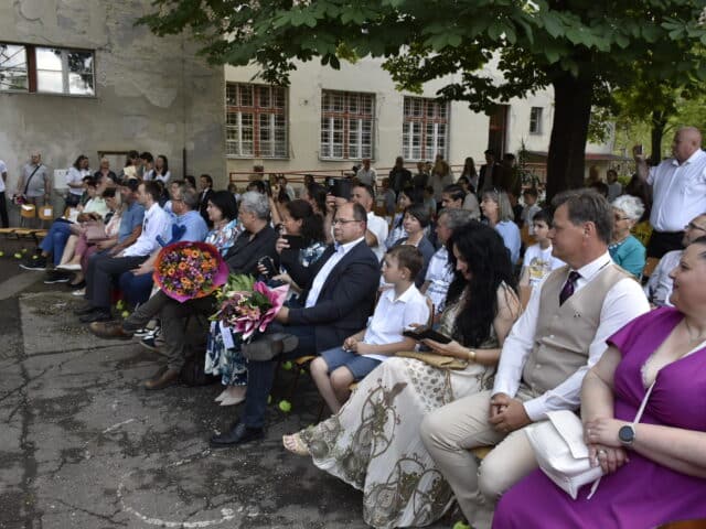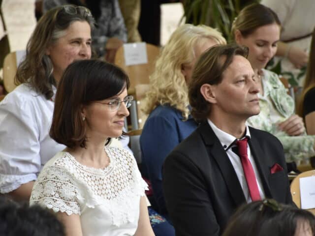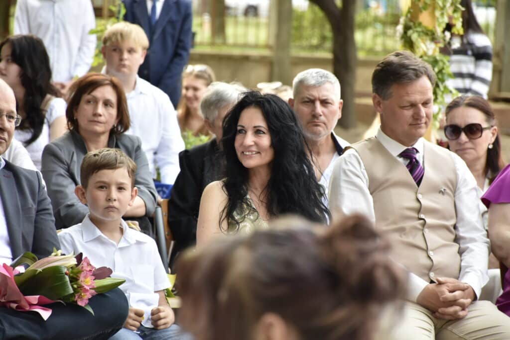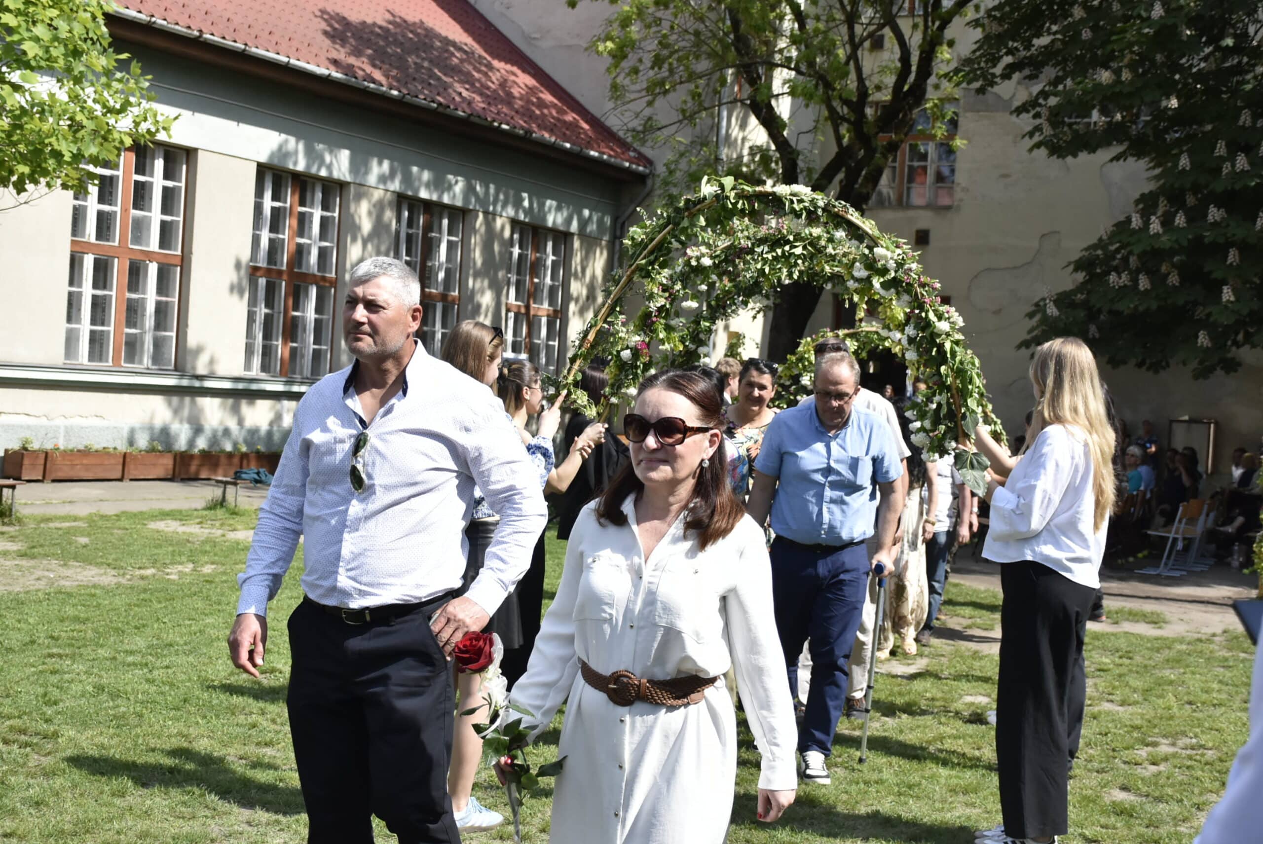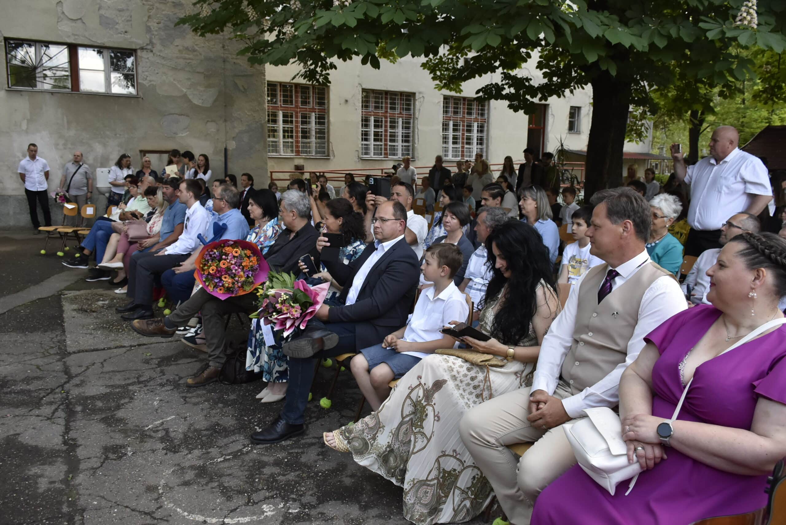 A két diák után Árvainé Volentér Éva, a végzősök osztálykísérője köszöntötte az ünneplő közösséget, álljon itt néhány gondolat az ő szeretetteljes szavaiból: – Ki hová ballag, ki hová siet, fut? Honnan jött, miért és hová megy? Kivel, kikkel, miért …..? Kifelé menni valahonnan, miközben valahová befelé haladni. Keresni, kutatni, érezni, látni, beszélni, akarni, szeretni…. közben. Olyan szép itt lenni veletek, kedves szülők, a rokonok csodálkozó tekintetében, szeretetteljes tanári kollégiumunk és dolgozóink jelenlétében egy ünnepi órában, amit arra szentelünk, hogy közösen gondoljunk vissza az elmúlt öt évre, figyelmünket felemeljük egy kicsit, megálljunk.