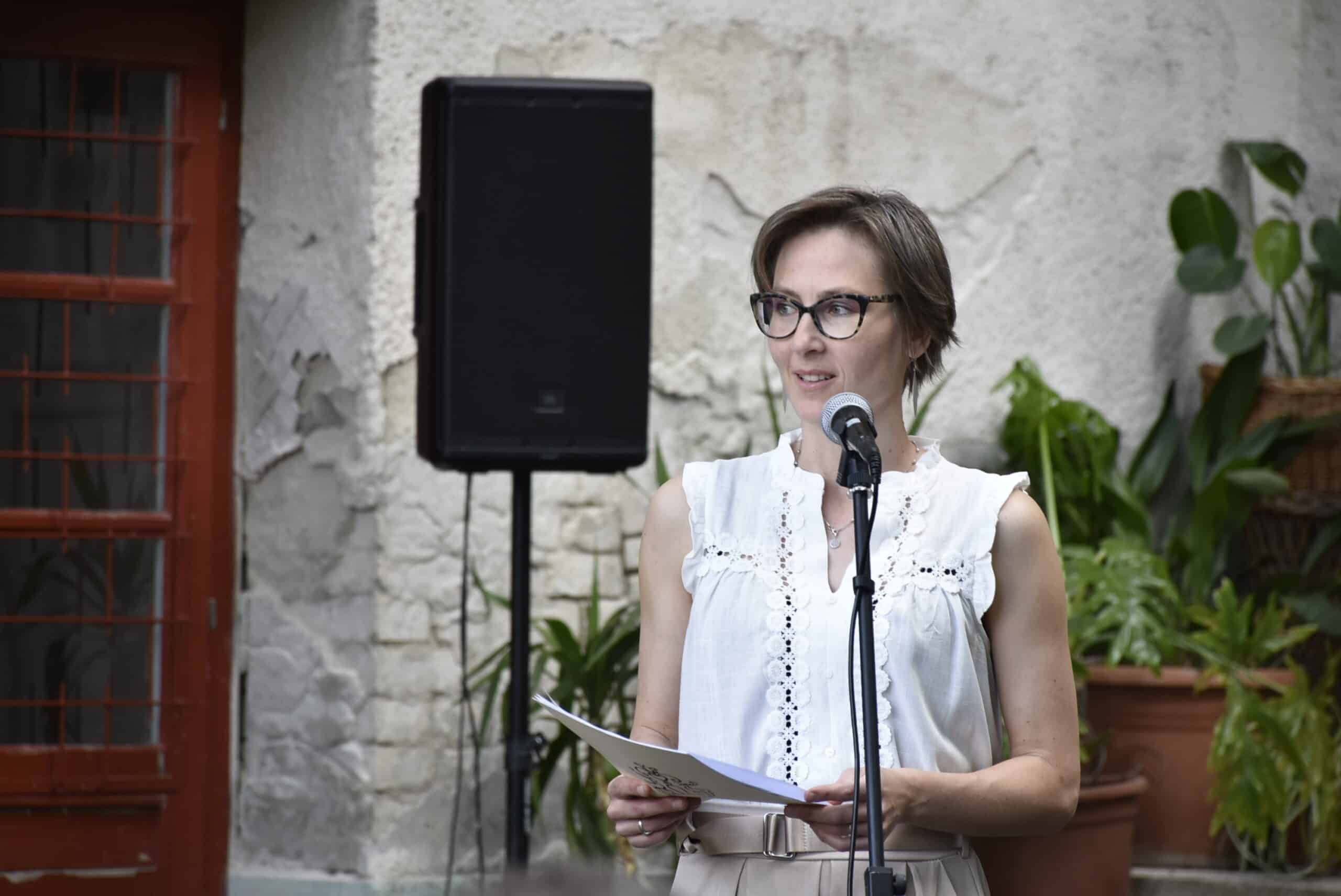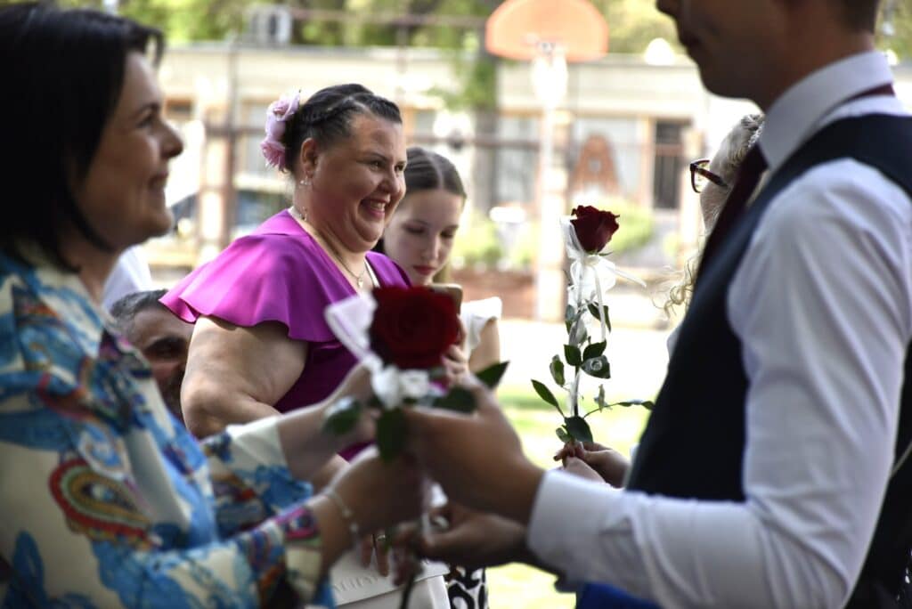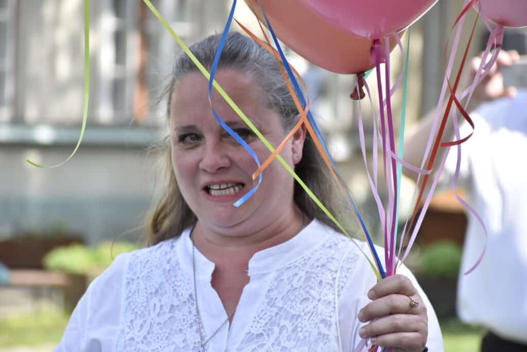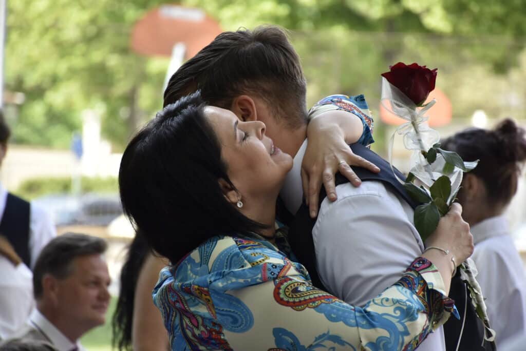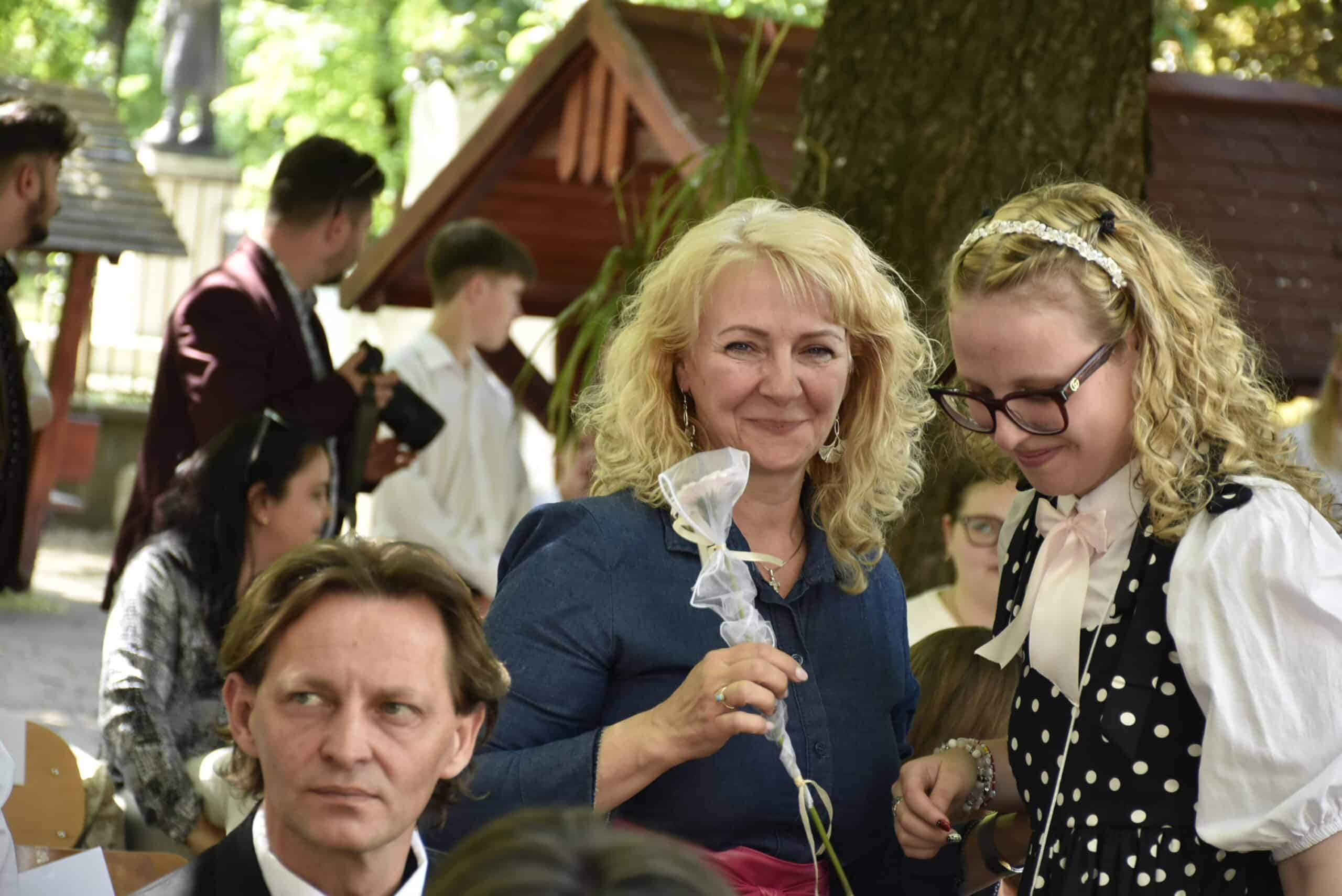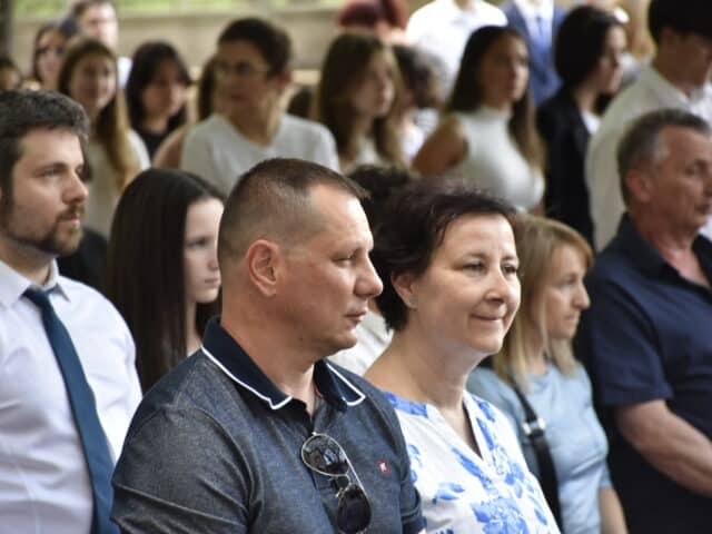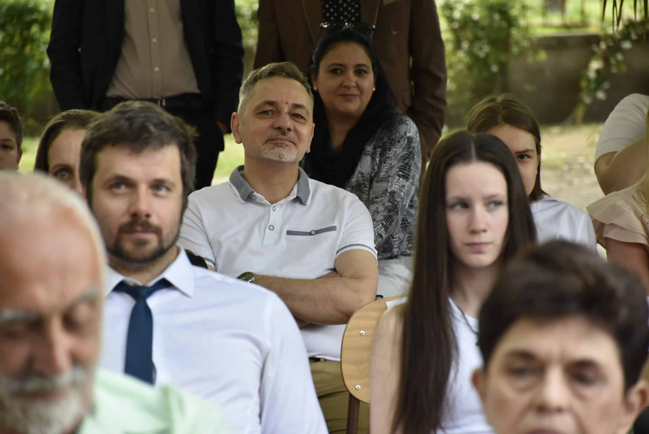 A két diák után Árvainé Volentér Éva, a végzősök osztálykísérője köszöntötte az ünneplő közösséget, álljon itt néhány gondolat az ő szeretetteljes szavaiból: – Ki hová ballag, ki hová siet, fut? Honnan jött, miért és hová megy? Kivel, kikkel, miért …..? Kifelé menni valahonnan, miközben valahová befelé haladni. Keresni, kutatni, érezni, látni, beszélni, akarni, szeretni…. közben. Olyan szép itt lenni veletek, kedves szülők, a rokonok csodálkozó tekintetében, szeretetteljes tanári kollégiumunk és dolgozóink jelenlétében egy ünnepi órában, amit arra szentelünk, hogy közösen gondoljunk vissza az elmúlt öt évre, figyelmünket felemeljük egy kicsit, megálljunk.