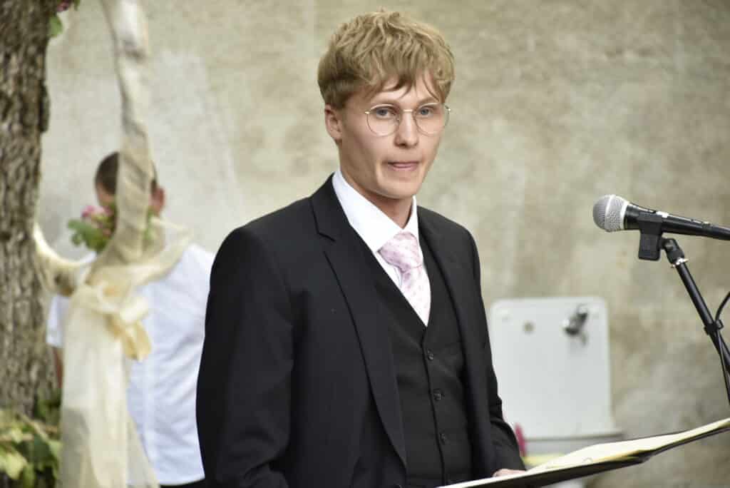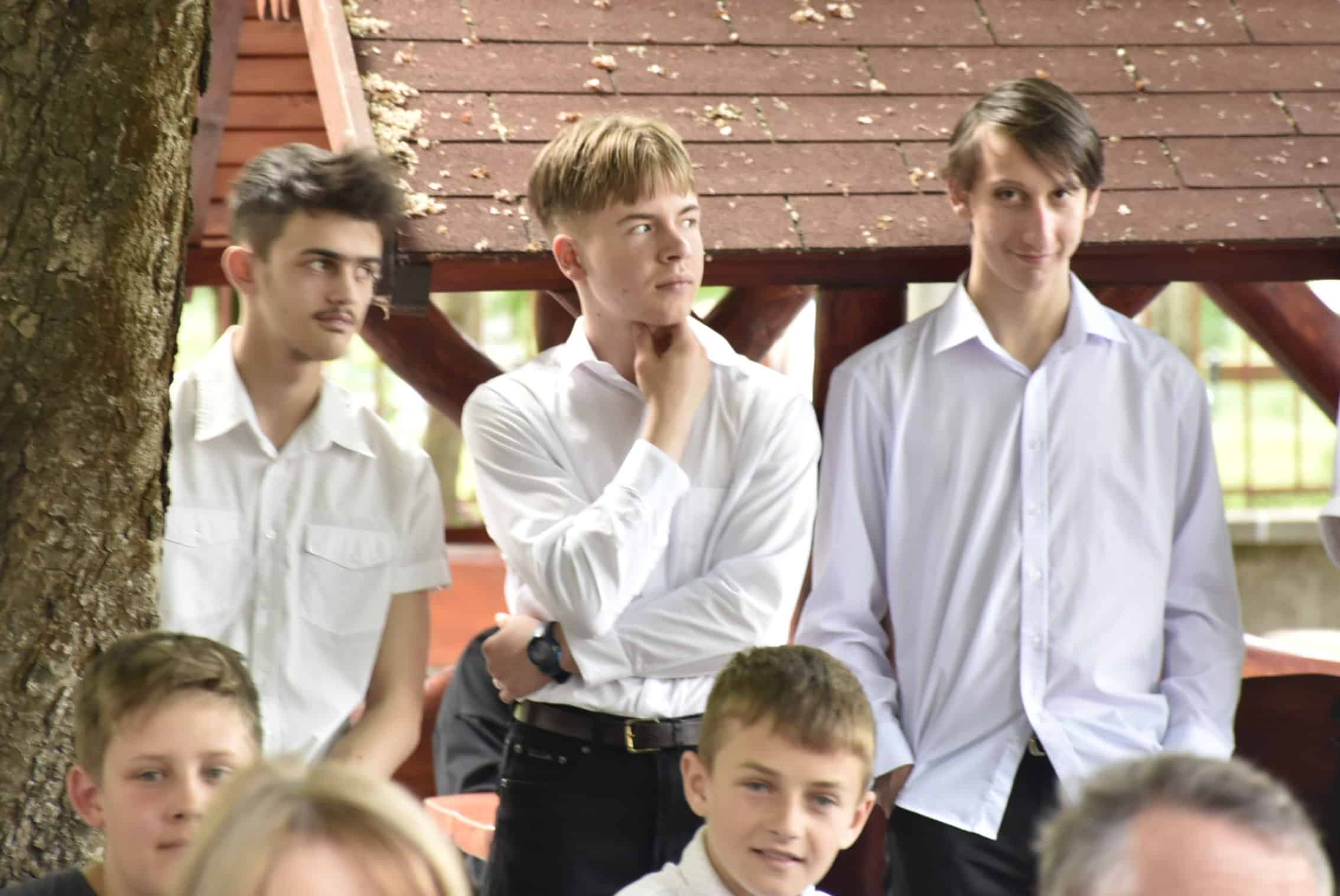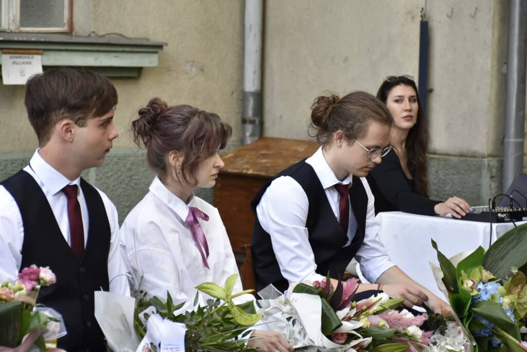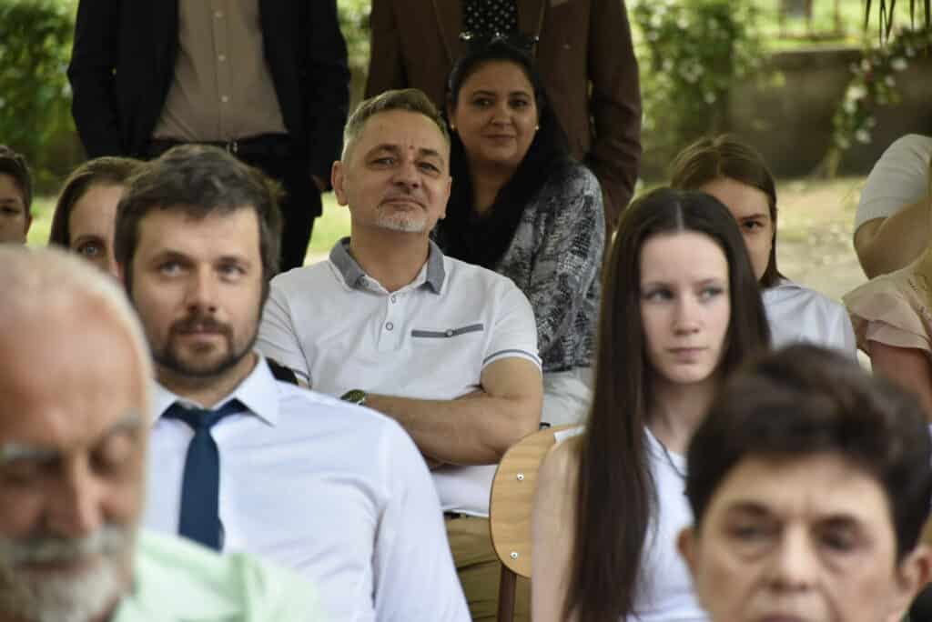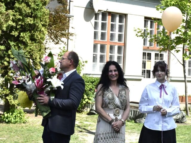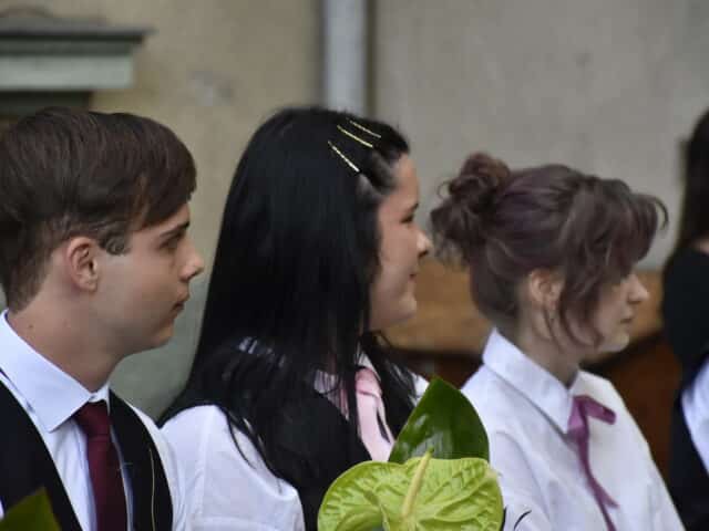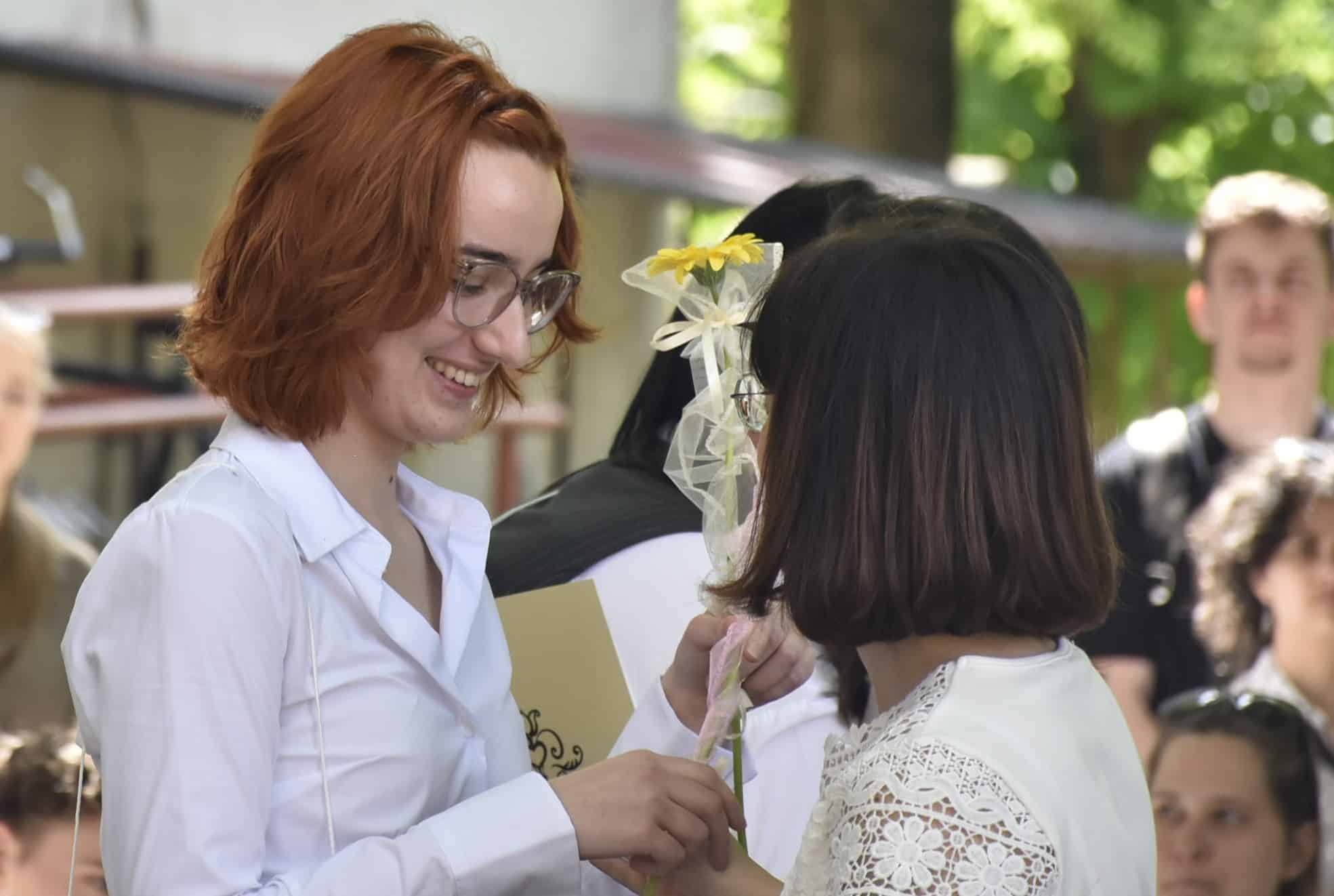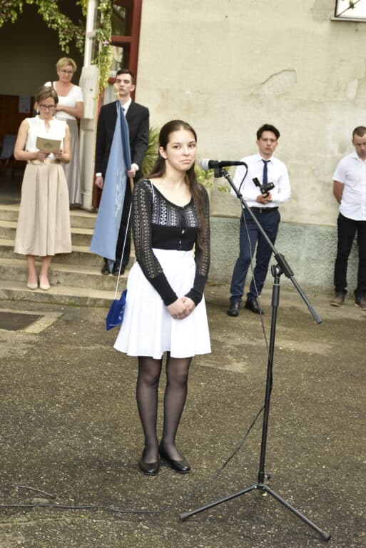 – Azért állok most itt a mikrofonnál ezen a szép ünnepi napon, hogy búcsúbeszédet mondjak a 13. osztály nevében. Nem egyszerű feladat, hiszen nem állnak halomban a ballagási búcsúbeszédek az iskolában, hiszen mi vagyunk az első osztály, aki elballag a gimnáziumból. Elsőnek lenni valamiben nehéz és izgalmas dolog is egyben, ezt megtapasztaltuk gimnáziumi éveink alatt. Az életet gyakran hasonlítják az utazáshoz, ezt az utazást egy vonatúthoz hasonlítva tudnám legjobban átadni: minden reggel a hajnalban kelés várta a nagy többséget, a MÁV lestrapált mozdonyai vánszorogtak velünk az iskola felé. Beérve az első órára, gondolatban még nem szálltunk le erről a vonatról, tovább zötyögött velünk, óráról órára. Néha, mintha erőt vett volna magán és nagy lendülettel megindult, ekkor az események követhetetlen forgószélben váltották egymást hangos nevetések és nagy viták formájában.