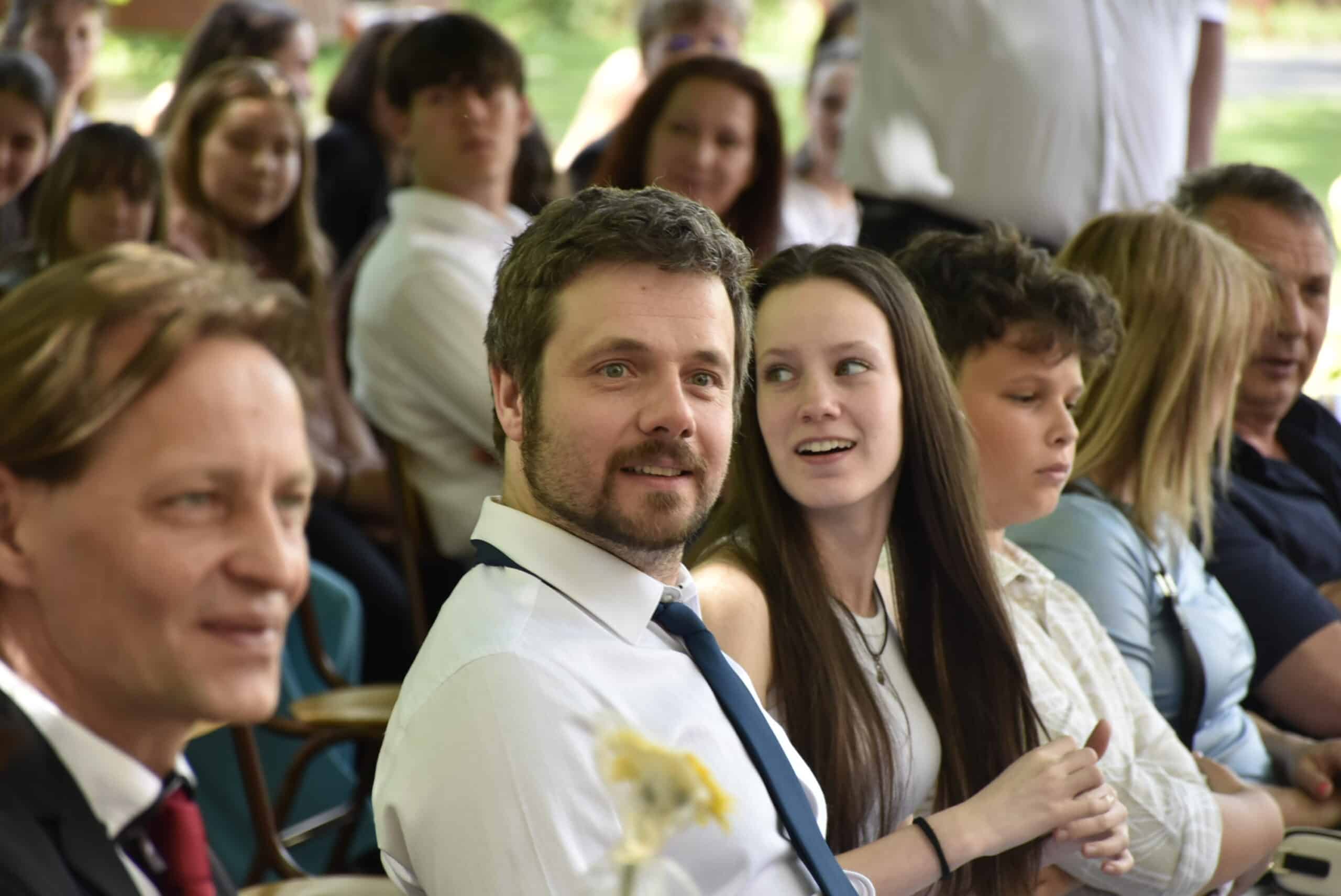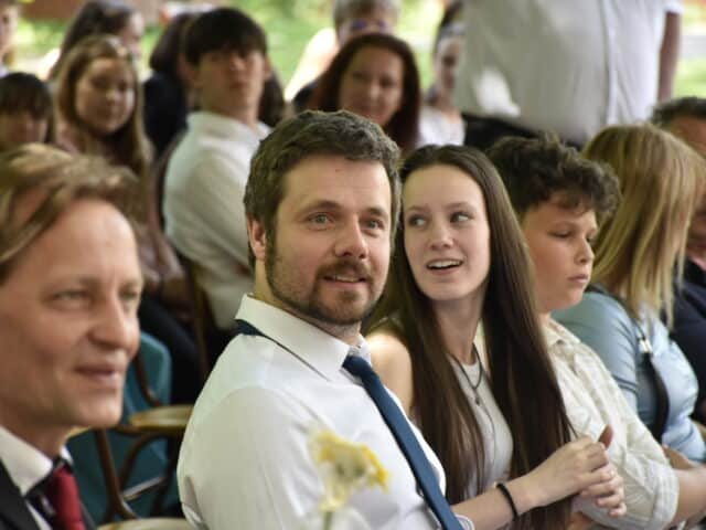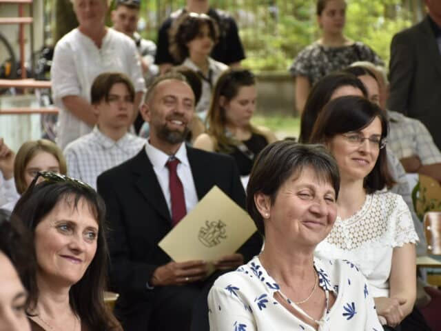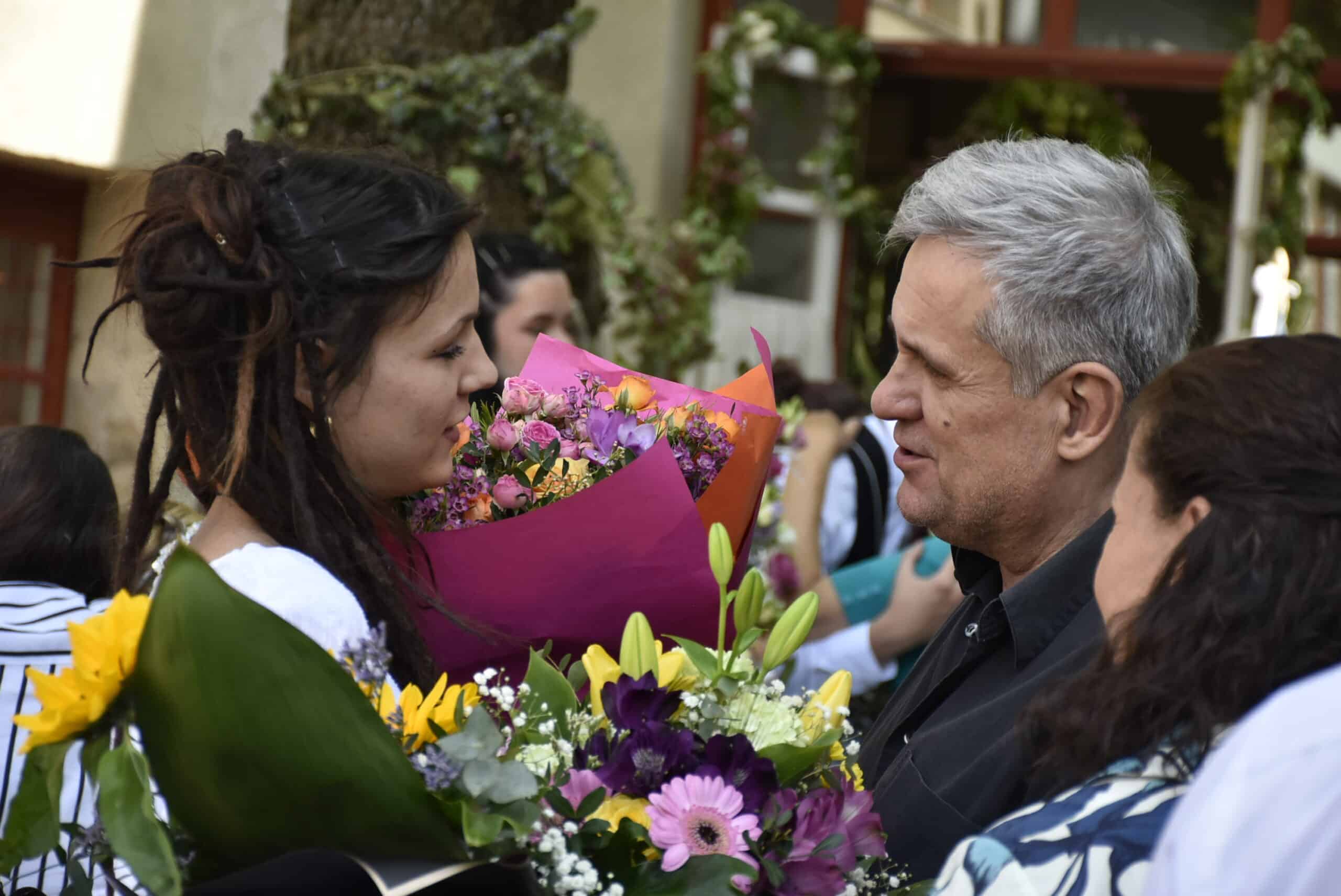 A Waldorf-gimnáziumi évek sok-sok kihívást rejtettek, olyan fellépéseket, az élet színpadán, ahová nemcsak a kiválogatottak léphettek fel, hanem mindenkinek meg kellett jelenni. Mint a saját életben is, jelen kell lenni, lélekjelenlét kell. Köszönettel tartozom nektek, hiszen sok mindent tanítottatok nekem és persze tanártársaimnak is. Kifejeztétek többször, hogy nem egyszerű a legnagyobbnak, legidősebbnek lenni. Bár mindig szerettétek, hogy önálló úton járhattok, azért mégis látszott, ez nem könnyű, igazi kihívást jelent. Sok mindenben lehettek az utánatok következőknek példaképek: a bátorságban, hiszen mindent először csináltatok itt, és mindig figyeltetek a minőségre. A tanulásban is szép eredményeket értetek el. A 13-dikos bizonyítványokban többötöknek kizárólag ötöse és négyese van. De tudjuk, hogy nem csupán ezek a konkrét eredmények számítanak, hanem a kitartás, akarás, alázat, a valahová tartozni akarás, a szív összeköttetései. Ezek tesznek bennünket igazán emberré.