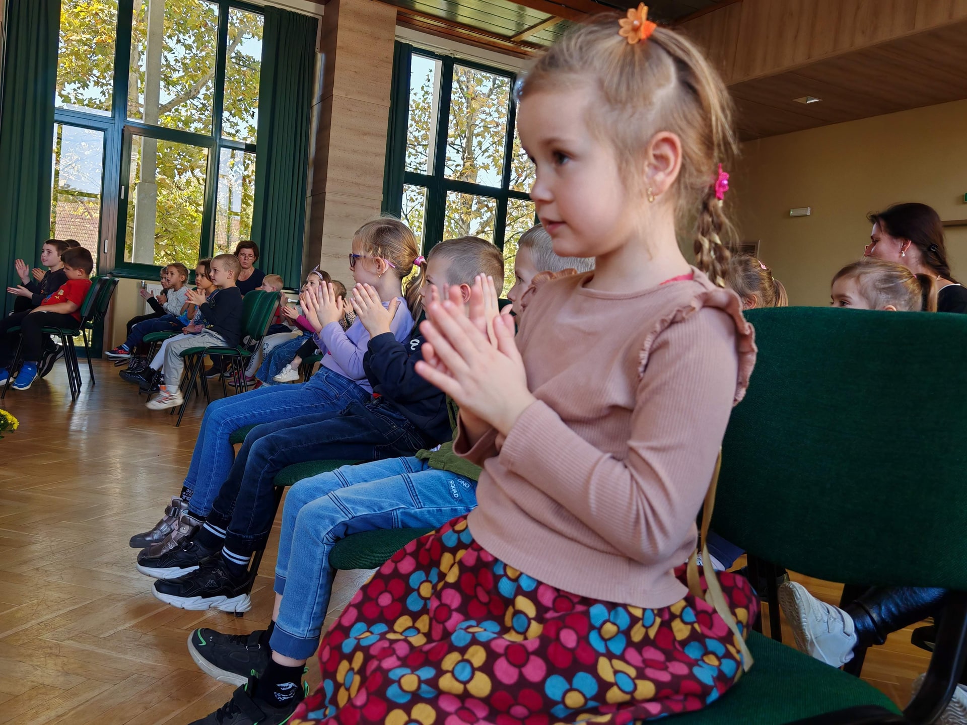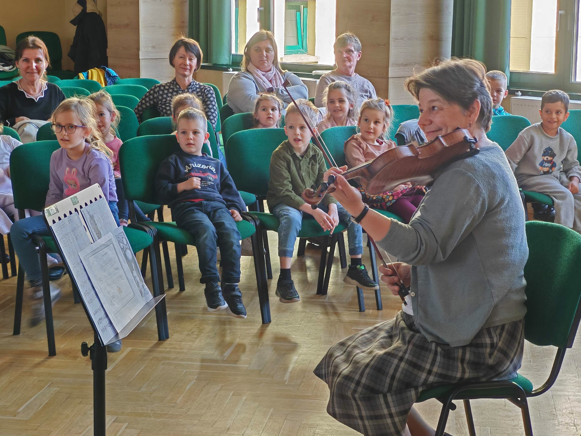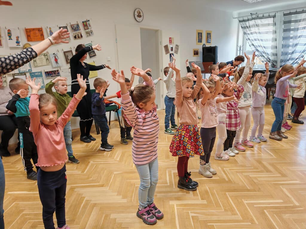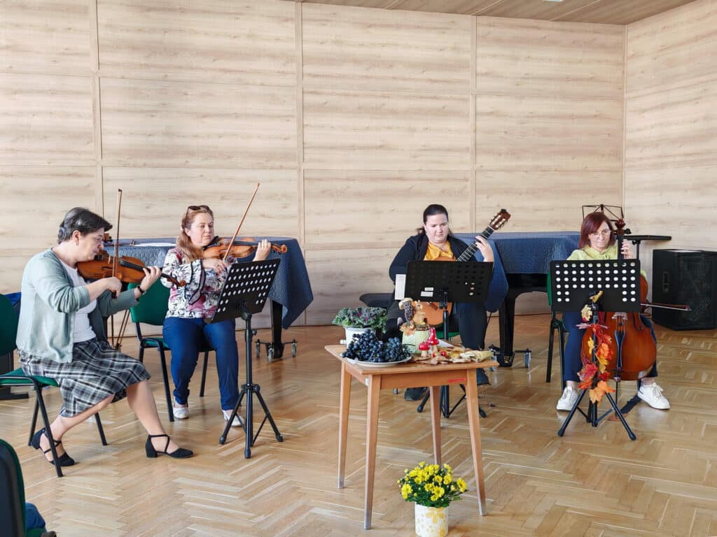 Évekkel ezelőtt érkezett a megkeresés a kicsik életkori sajátosságaira szabott komplex koncertek látogatására. A művészeti iskola tanárai örömmel mondtak igent az óvónéniknek, akik számára nagyon fontos, hogy a zenei nevelés áldásos hatásaival megajándékozzák a rájuk bízott gyerekeket. Az idei első foglalkozás – ahogyan a cím is sugalmazza – az őszről szólt október 16-án. A vonós tanszak tanárai, Kurai-Kis Szilvia, SzerinéBiró Ágnes, Závogyánné Varga Ildikó és Szarvas Alexandra gitártanár változatos repertoárral varázsolta el a gyerekeket. Többek között felcsendült Vivaldi Négy évszakjának Ősz tétele, de Gryllus Vilmos dallamai is elhangzottak. Amíg a népes társaság egyik része a koncerten hallgatta a zenét, illetve énekelt, addig a többiek együtt táncoltak Kósa István társastánc tanárral. Az ovisok a további alkalmakon találkozhatnak a fafúvós hangszerek családjával, például a klarinéttal, fuvolával, vagy oboával. Megismerkedhetnek az olyan rézfúvós hangszerekkel, mint a harsona, vagy a kürt. Bepillantást kapnak az ütős hangszerek sokszínűségébe, illetve az örök kedvenc, a zongora is megszólal egy alkalommal. A néptánccal, népi játékokkal Fekete Beatrix segítségével találkoznak látogatásaik során az óvodások. A „nagyok” visszatérve az óvodába, napokig mesélnek élményeikről a „kicsiknek”, akik alig várják, hogy ők is mehessenek a zeneiskolába táncolni, koncertezni.