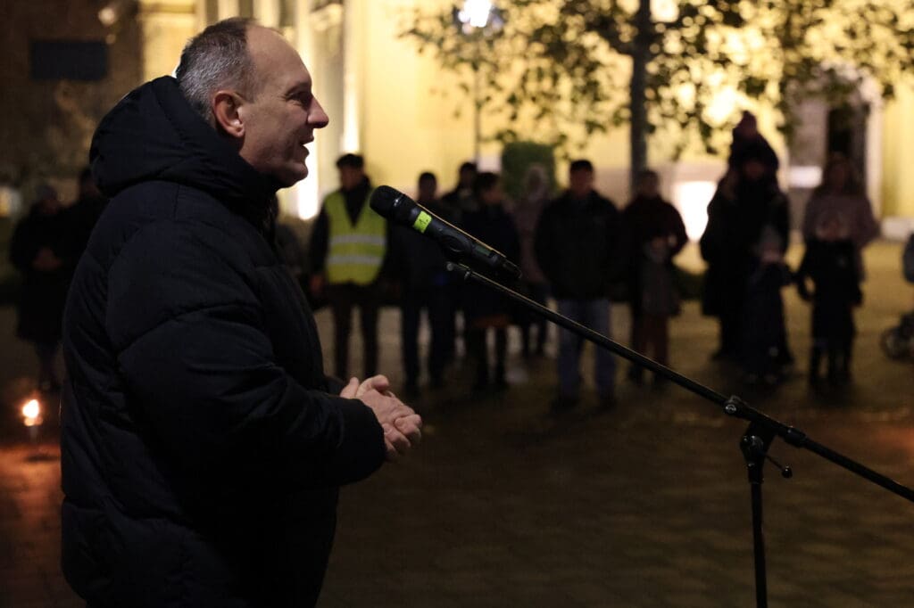 A megnyitón Csányi József polgármester köszöntötte a résztvevőket, hangsúlyozva, hogy az adventi időszak a remény, az összetartozás és az egymás felé fordulás ideje. Elmondta, hogy az elmúlt napokban számos hivatali munkatárs dolgozott azon, hogy az ünnepi fények méltóképpen ragyoghassanak a városban. Hétfőtől kezdve szorgos kezek öltöztették díszbe a tereket, utcákat és fákat, nem csupán a főtéren, hanem a város több pontján is.