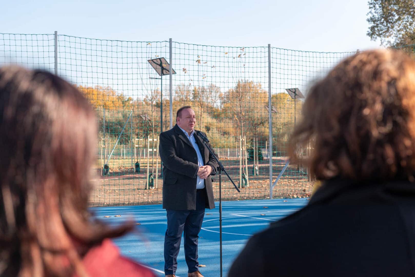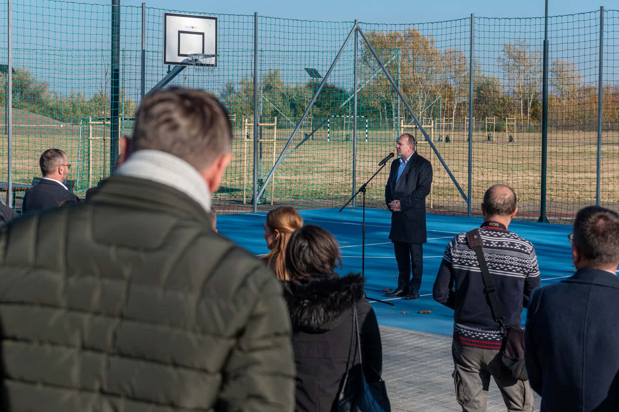 Az átadó ünnepségen elsőként Csányi József polgármester köszöntötte a megjelenteket. Beszédében kiemelte, hogy a Vasas pálya felújítása hosszú éveken átívelő, kitartást igénylő folyamat eredménye. Mint mondta, az első pályázatot még 2015-ben nyújtotta be az önkormányzat, de a gazdasági nehézségek és a világjárvány miatt a projekt többször is halasztást szenvedett.