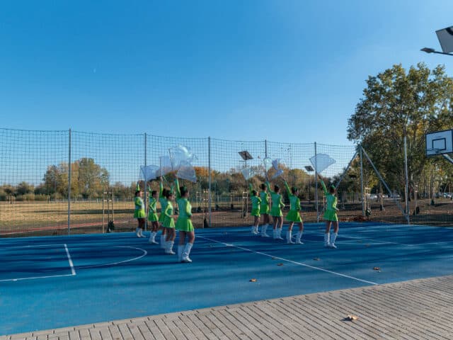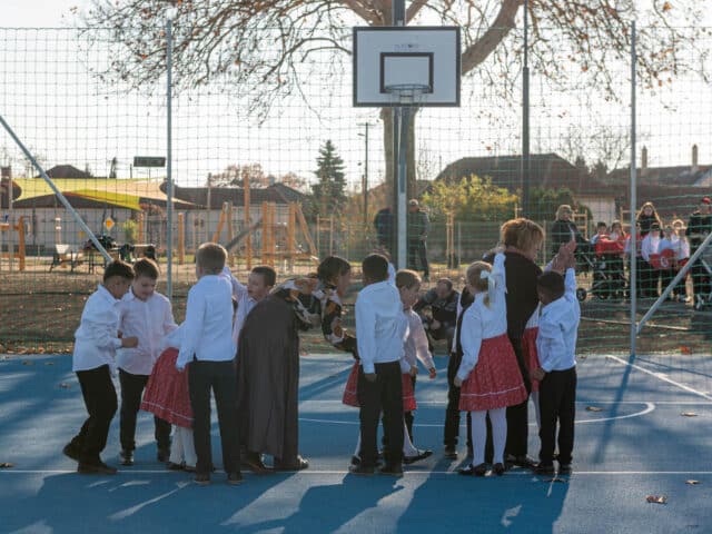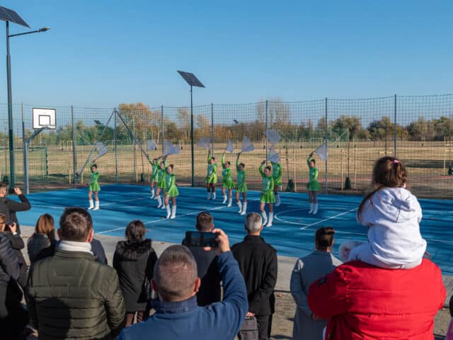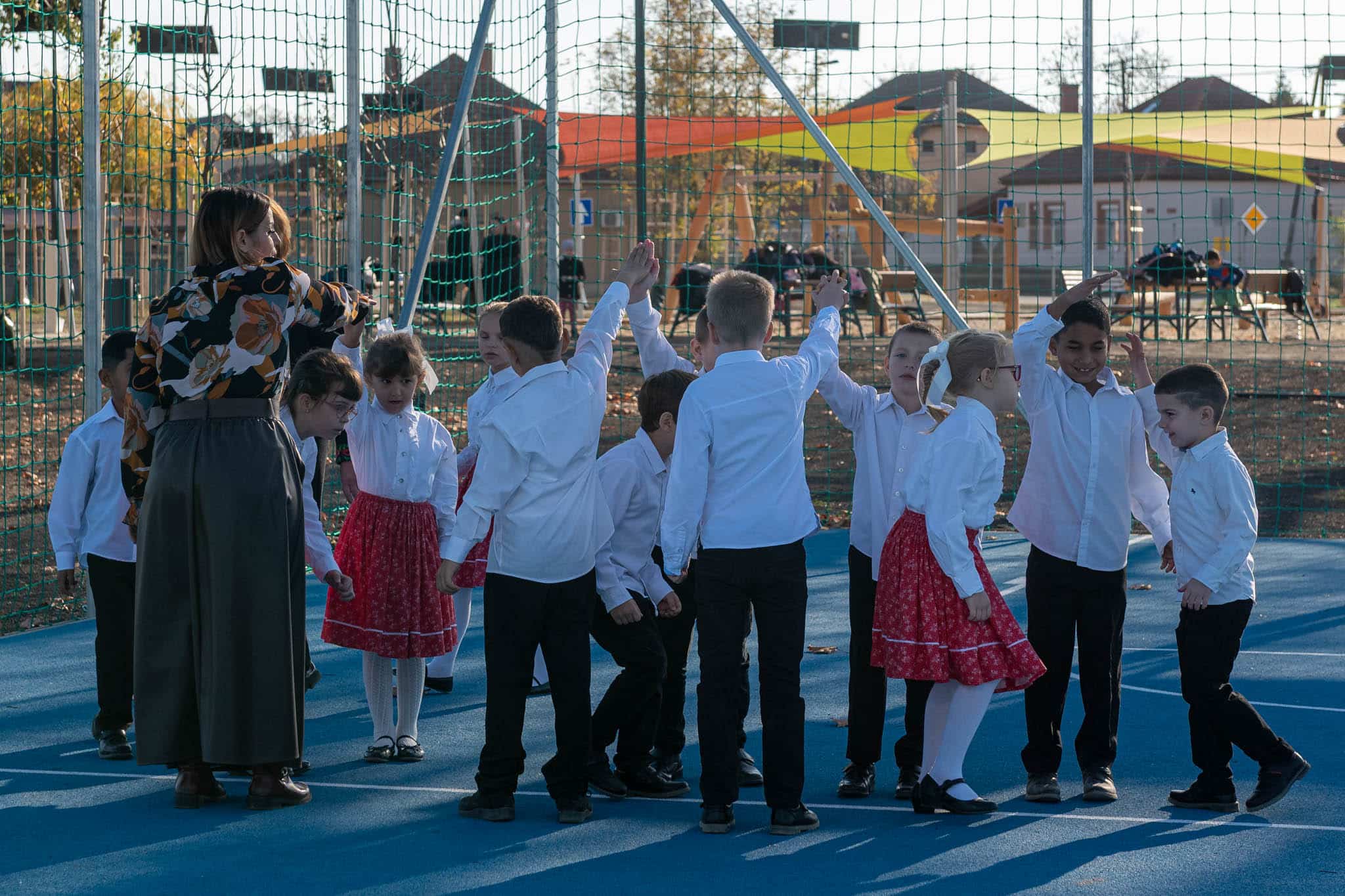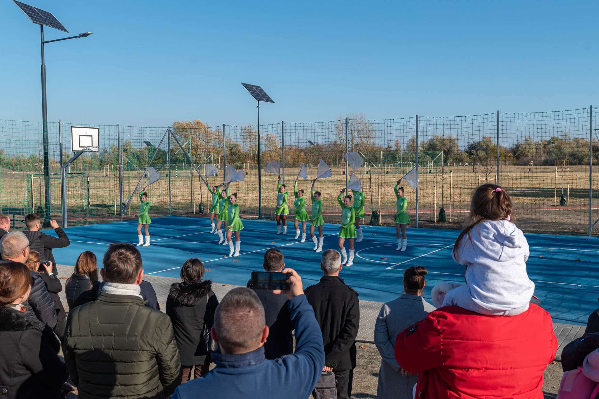 A rendezvényen közreműködtek a Darvas József Általános Iskola tanulói, akik ünnepi műsorral köszöntötték az új sportlétesítmény átadását.