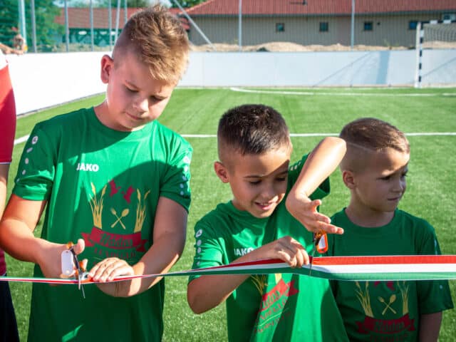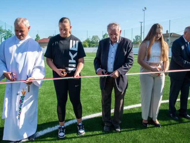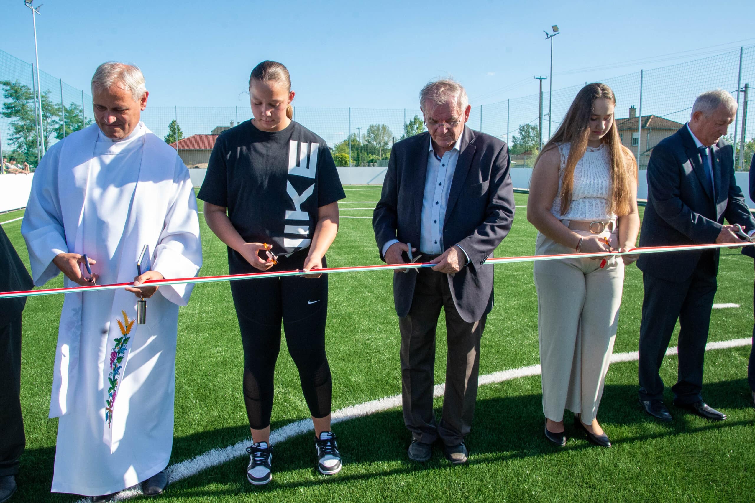 Az eseményt dr. Jeney Gábor plébános zárta, aki megáldotta az új műfüves pályát.