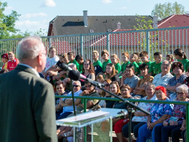 Szabó Mihály köszöntőjében mérföldkőnek nevezte a műfüves pálya létrejöttét a település életében. Hangsúlyozta: bár a fejlesztés fontos előrelépés, még hiányzik a villámhárító és az eredményjelző tábla, így a munka nem tekinthető teljesnek.