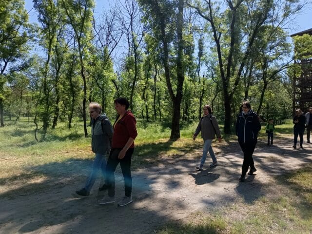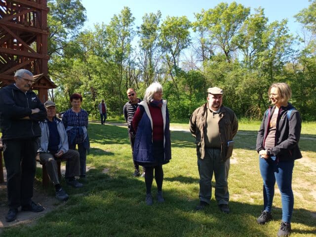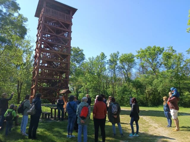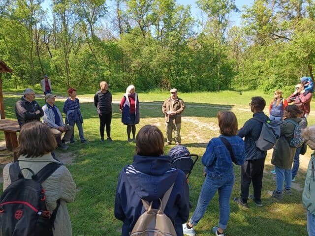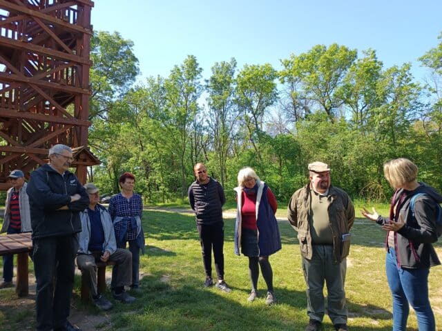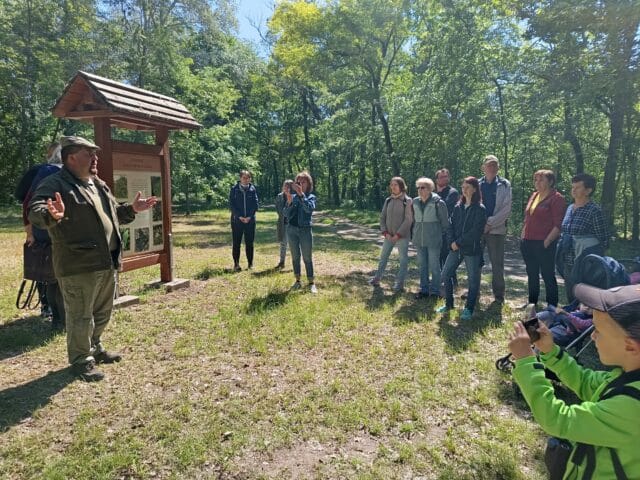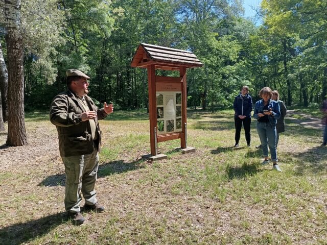 A séta egyik központi témája az örökerdővé alakítás folyamata volt. Megtudtuk, a szakemberek célja, hogy a 32 hektáros parkerdő hosszú távon is fenntartható, természetesebb állapotú, közjóléti funkciókat betöltő zöldterületként működjön. Ez különösen nagy kihívás az Alföldön, ahol az éghajlatváltozás, a talajvízszint csökkenése és az inváziós fajok térnyerése folyamatosan nehezíti a természetes erdőtársulások fennmaradását. A 20. század közepén még valamivel magasabb volt a talajvízszint, de azóta az alföldi klíma sztyepp jellegűvé vált, ami egyre nagyobb kihívást jelent a telepített erdők számára.