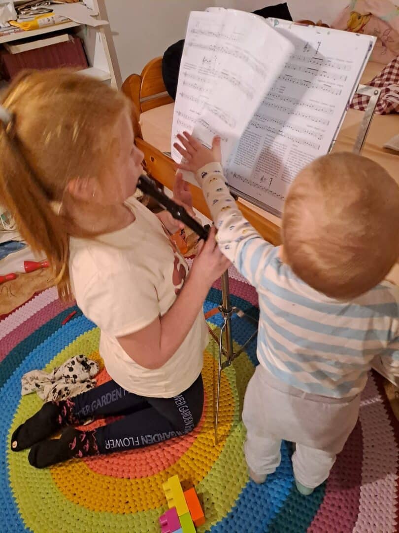 A család életében a zene nemcsak a szülők, hanem a gyerekek mindennapjainak is része. Lányuk, a nyolcéves Míra már nagycsoportos óvodásként kezdett furulyázni, most kürtöl.