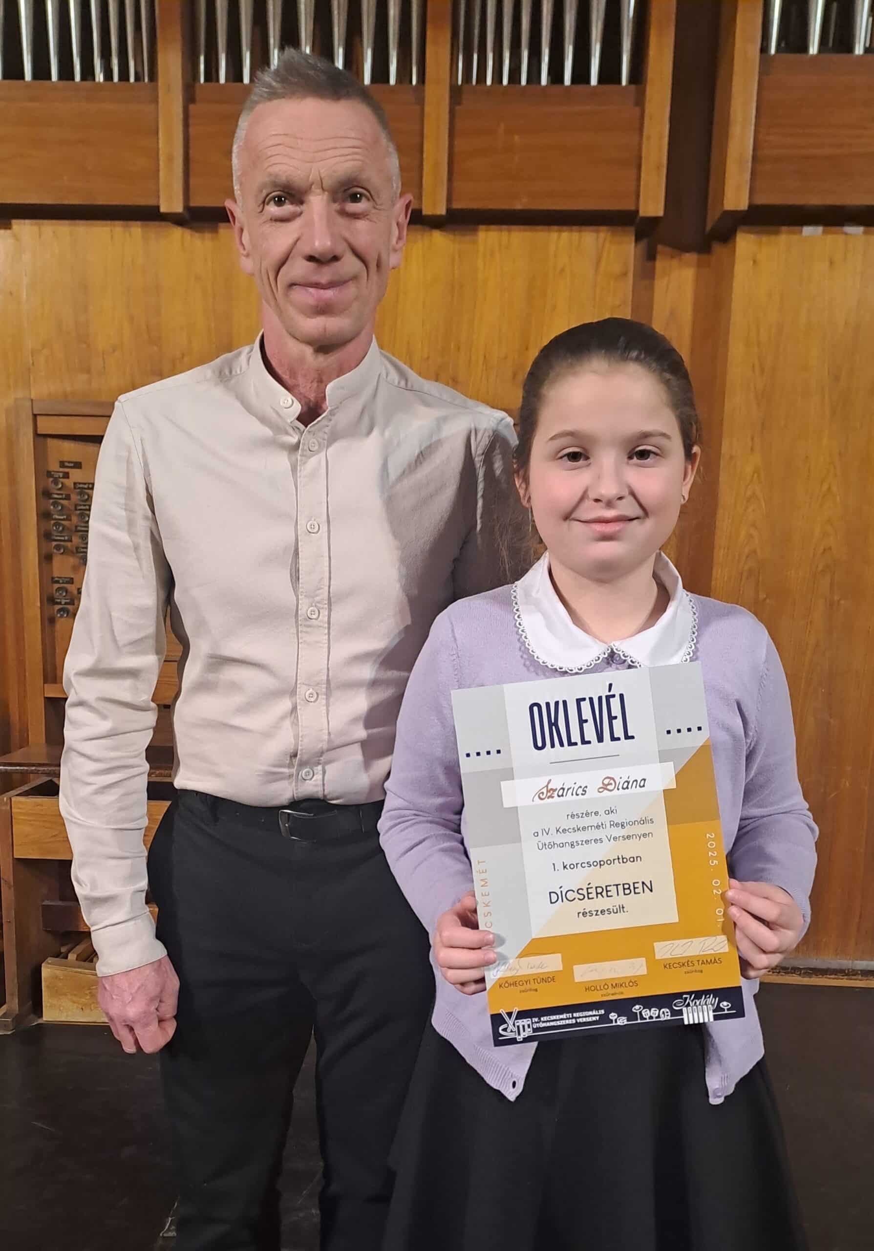 Ugyanezen a versenyen 1. korcsoportban Szárics Diána dicséretben részesült. Felkészítő tanára Takó Lajos, zongorán közreműködött Bolla Julianna.
