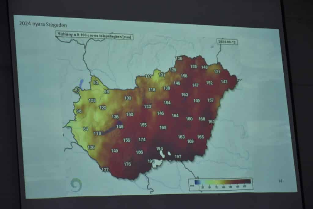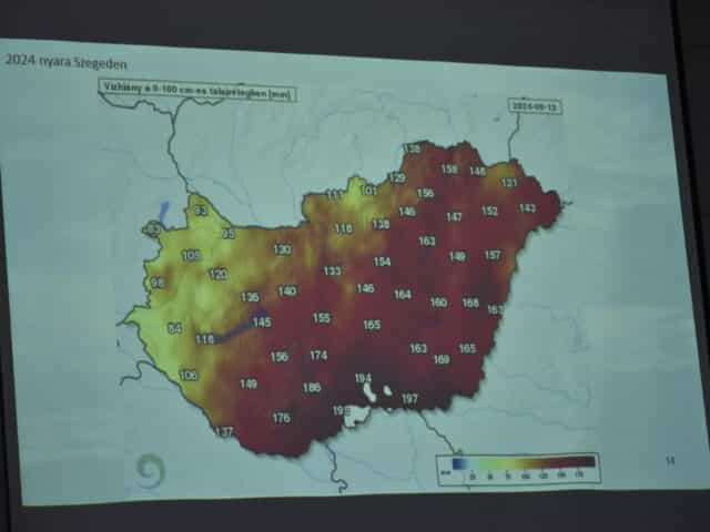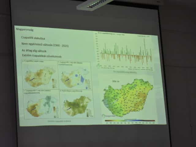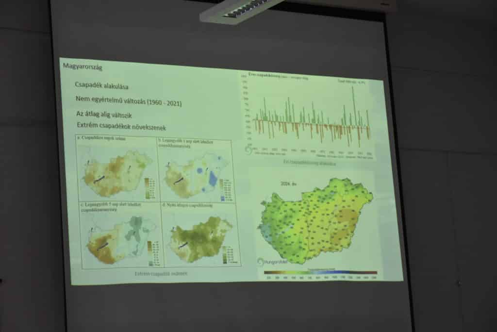 Az előadó részletes elemzést adott a csapadékeloszlás zavarairól is: 2024-ben például négyhónapnyi csapadék hiányzott, ami súlyos következményekkel járt a mezőgazdaságban. Az aszály, a vízhiány és a hőhullámok mind komoly kihívásokat jelentenek a termelés és a vízgazdálkodás számára.